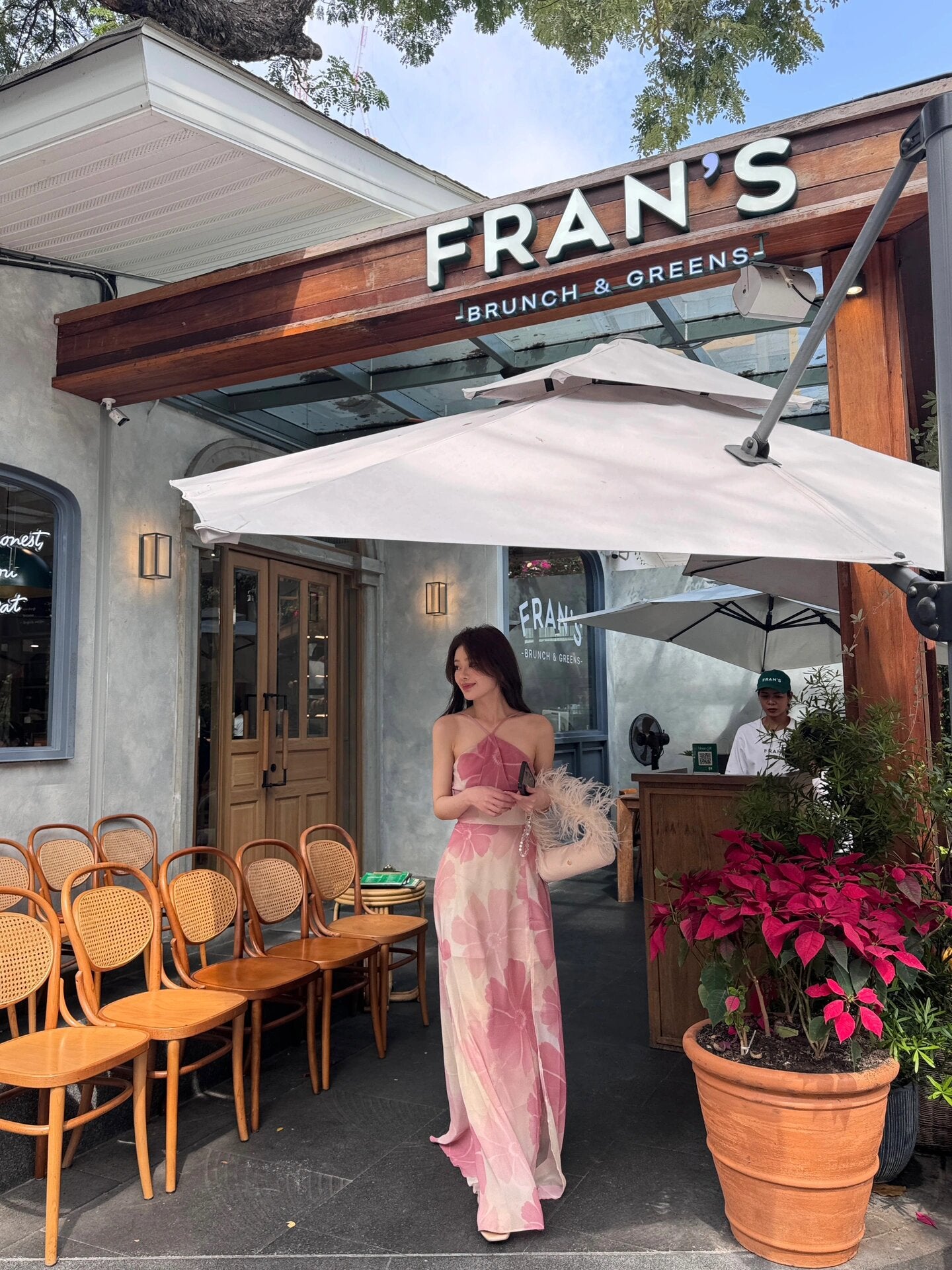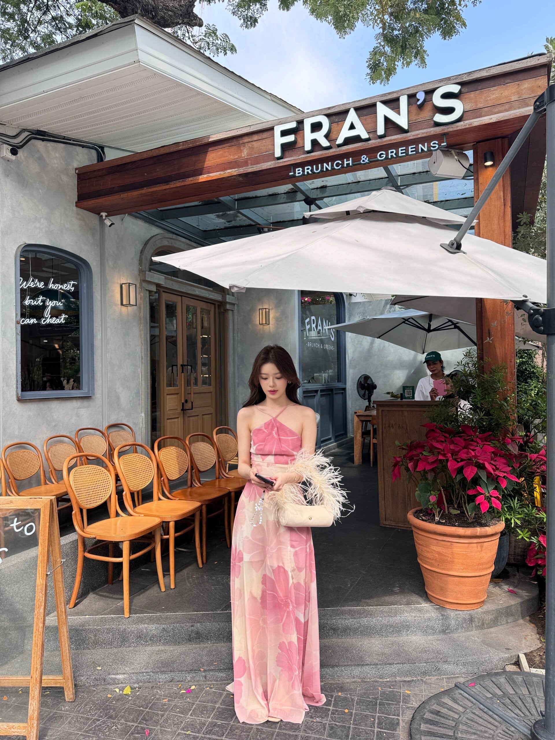 Enticing A-Line Floral Print Maxi Dress Hot Girls OOTD High-Slit Cinched-Waist Halter Long Dress AP3530