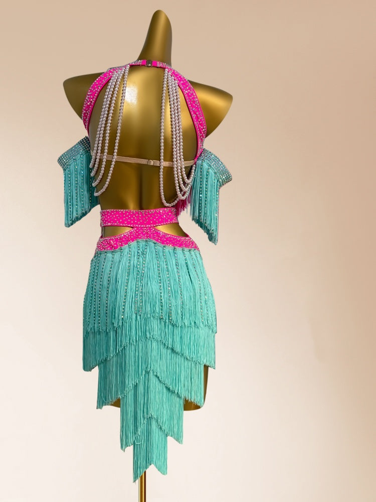 Attractive Sheath Halter Neck Color-Block Birthday Gowns Vibrant Sequins Beading Tassel Homecoming Dress AP3953