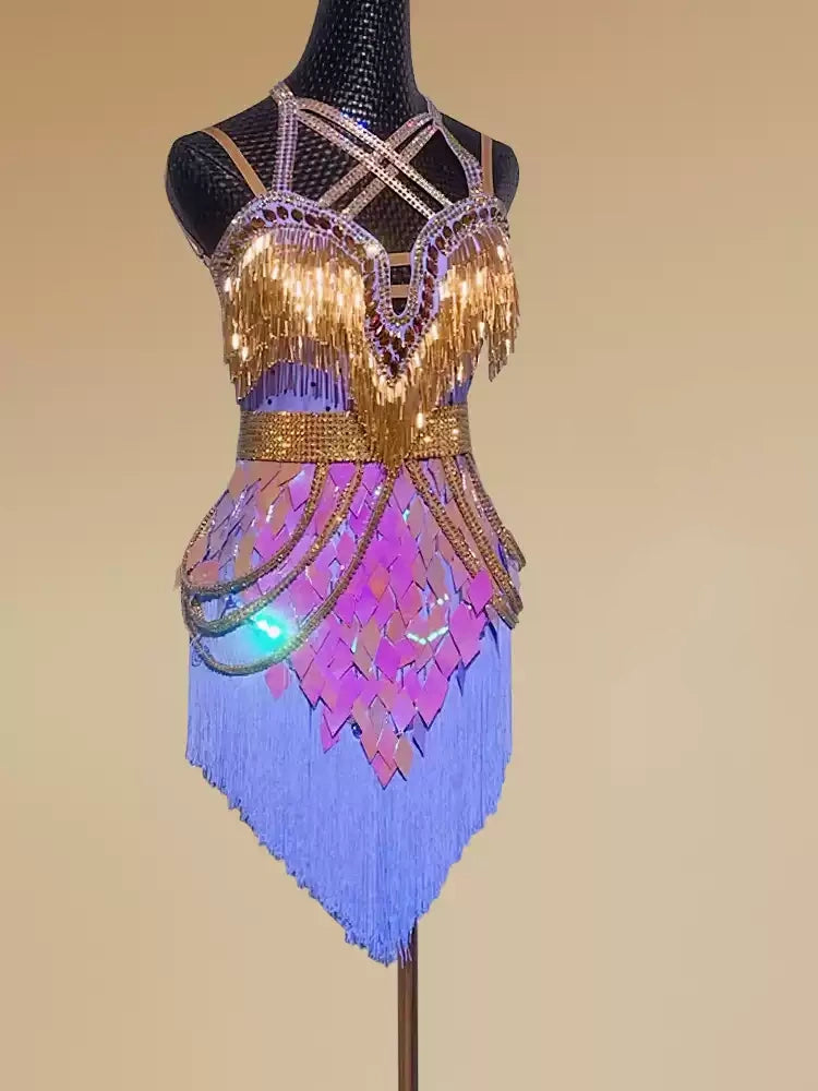 Unique Sheath Halter Neck Birthday Gowns Shining Sequins Beading Tassel Homecoming Dress AP3972