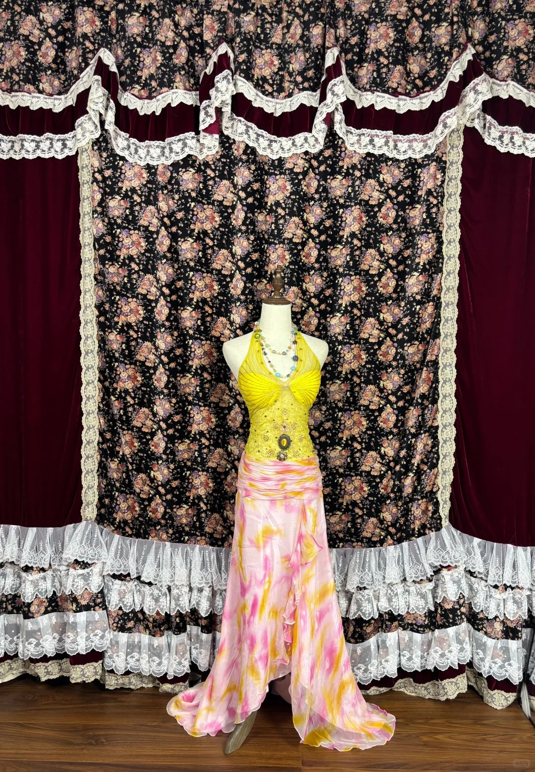 Graceful Sheath Halter Neck Evening Gowns Ruffled Slit Sequins Beaded Rhinestone Prom Dress AP2509