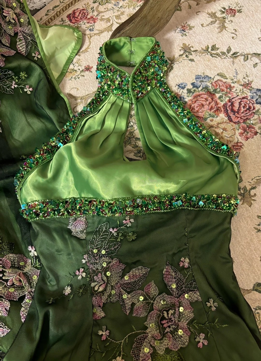 Oriental Sheath Halter Neck Long Evening Gowns Cutout Beading Embroidery Sequins Slit Prom Dress AP2829