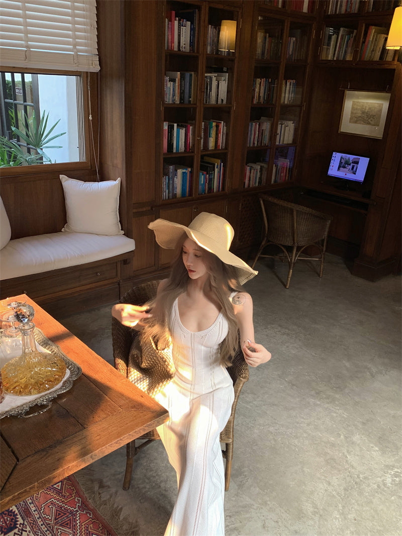 Pretty Sheath White Maxi Dress Spaghetti Strap Princess Cutout Asymmetric Hem Long Dress AP3418