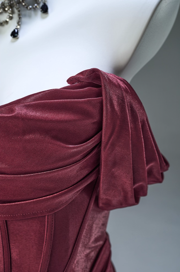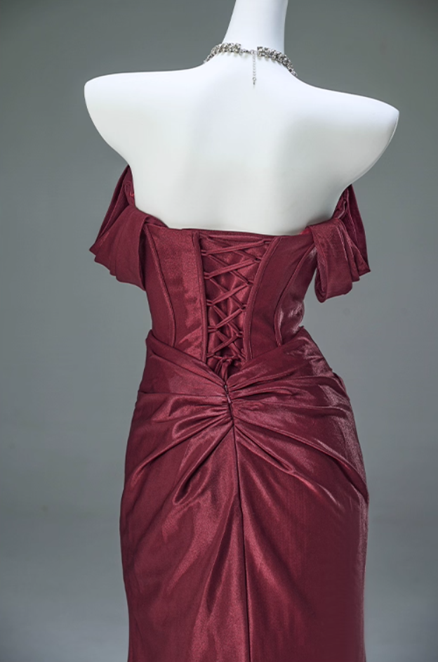 Simple Sheath Off-Shoulder Evening Gowns Glam High-Slit Ruched Red Prom Dress AP3911