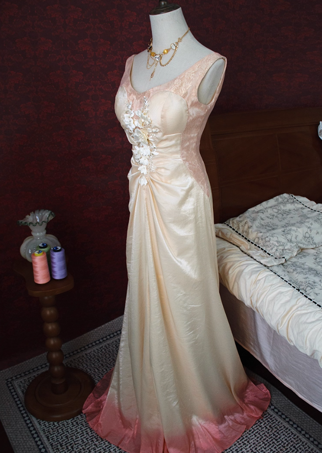 Trendy Sheath Spaghetti Strap Ombre Evening Gowns Appliques Beads Backless Prom Dress AP3126