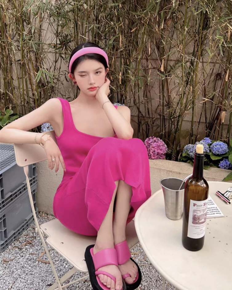 Splendid Sheath Spaghetti Straps Maxi Dress Casual Square Neck Getaways OOTD Long Dress AP3599