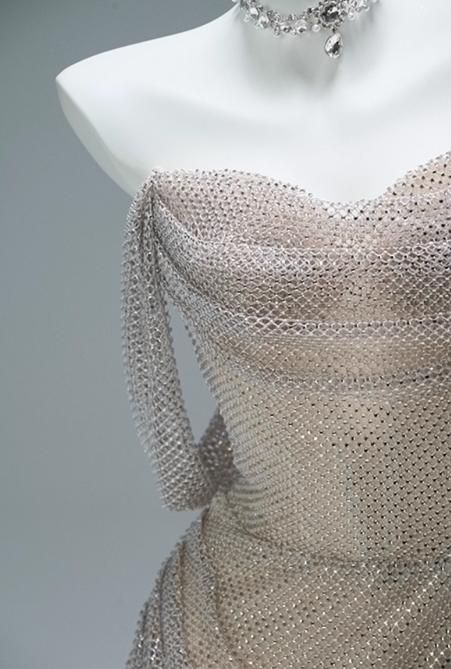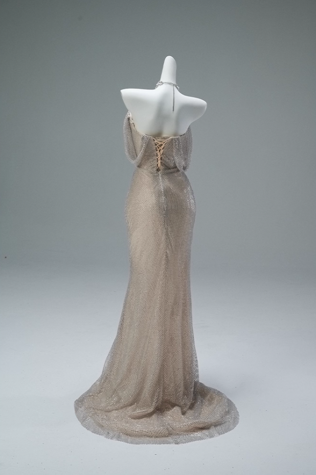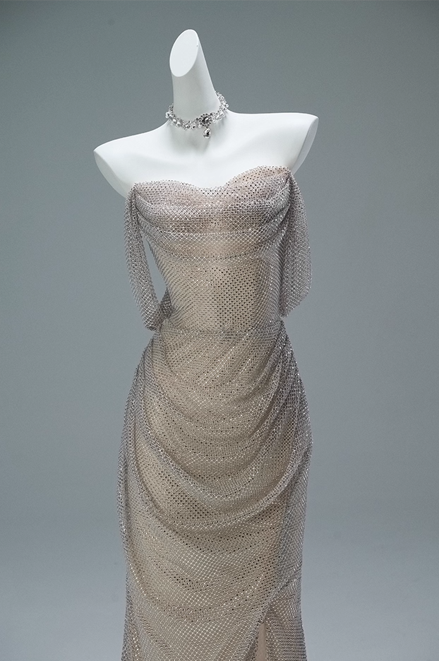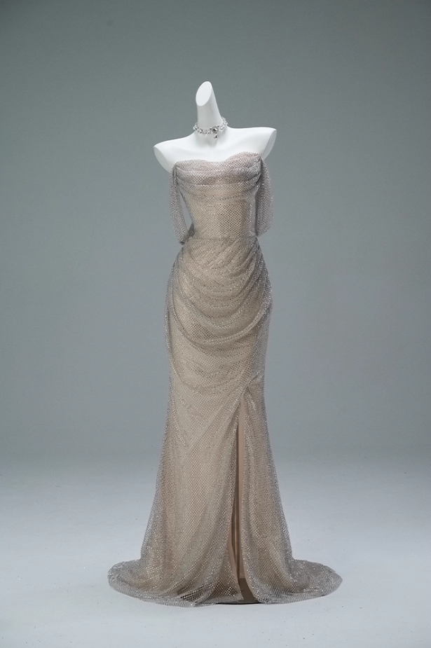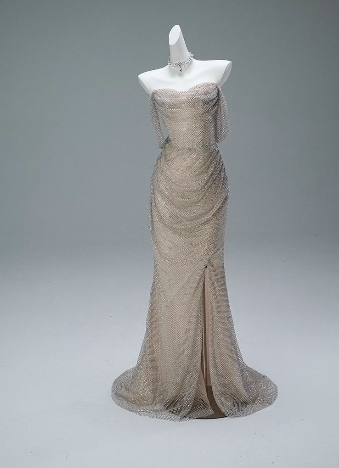 Sexy Sheath Off-Shoulder Slit Sweet 16 Evening Dress Sequins Mesh Ruched Prom Dress AP3852