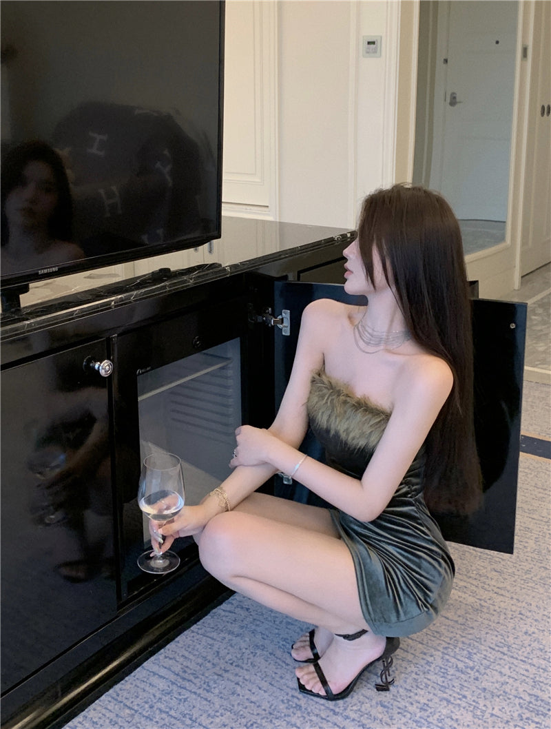 Gen Z Style Vintage Sleeveless Summer Skirt Strapless Soft Fabric Bodycon Short Dress AP0480