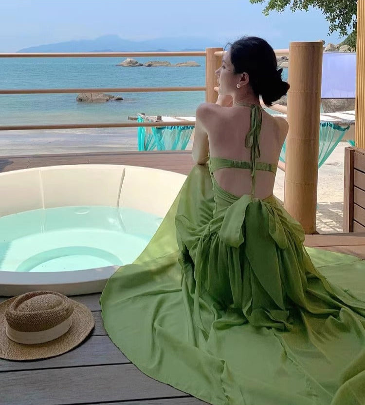 Flowy Beach Vacation Lightweight Dress With Natural Waist Fashion Halter Dress AP0293