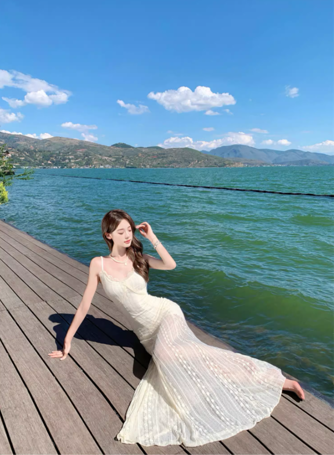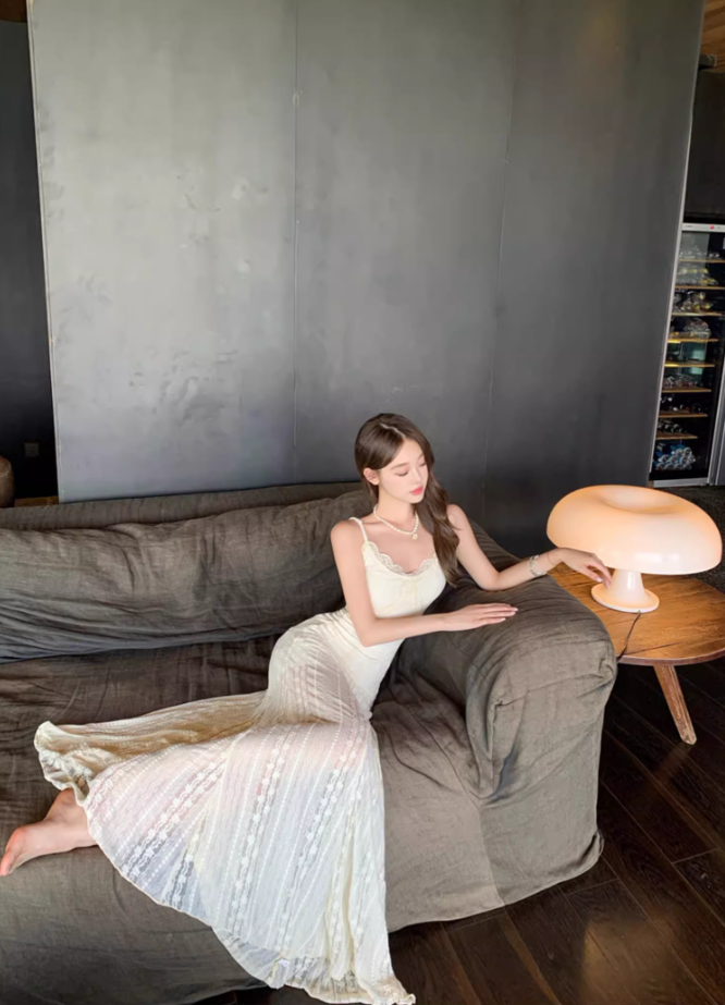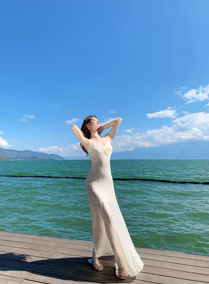 Viral Simple Silhouettes Maxi Dress Spaghetti Strap Hollow-Out Flattering Long Dress AP0693