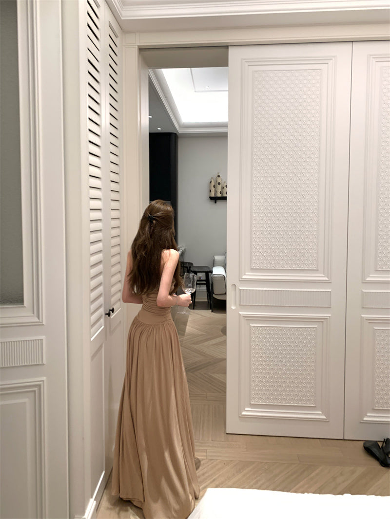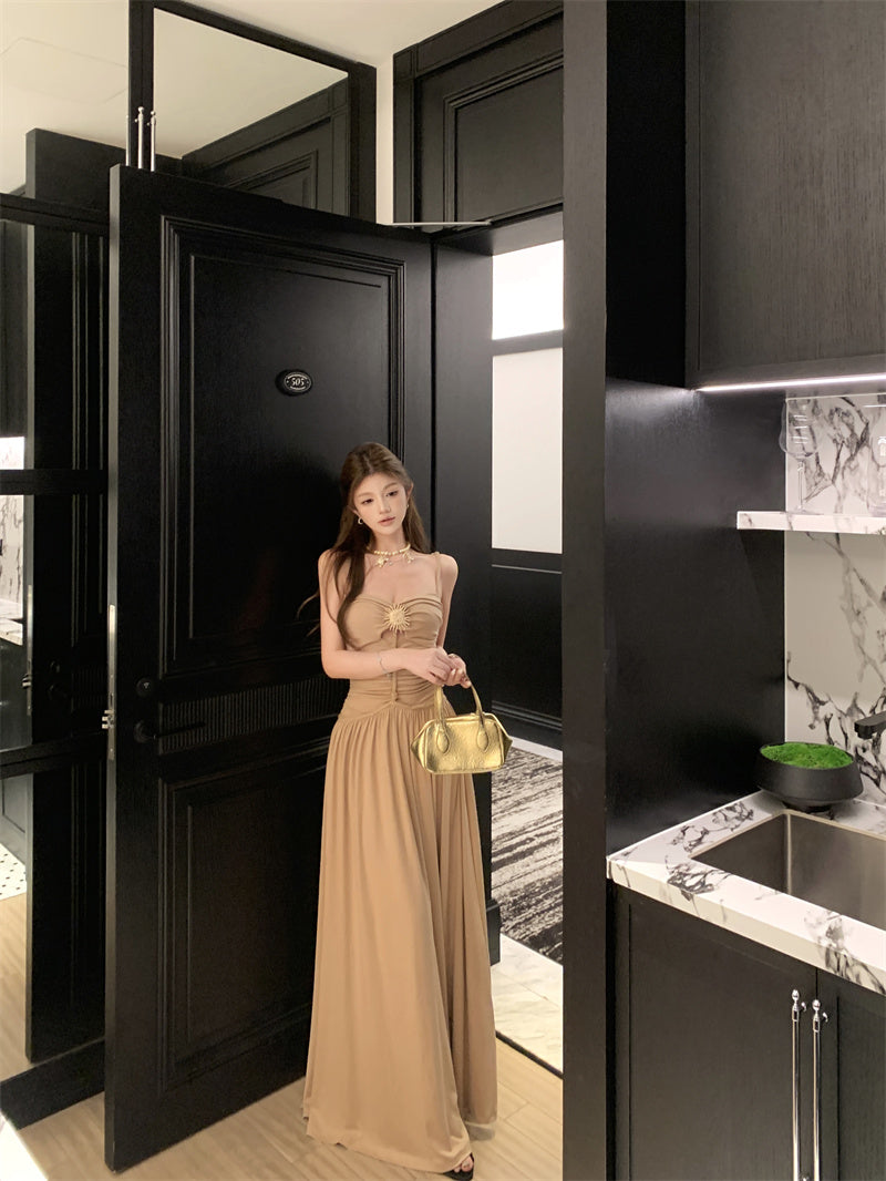 Alluring Spaghetti Strap A-Line Maxi Dress Cinched-Waist Flowy Cutout Long Dress AP3281