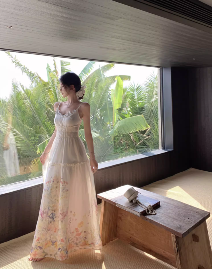 Fabulous Spaghetti Strap A-Line Cinched-Waist Maxi Dress 3D Floral Everyday Wear Print Long Dress AP3377
