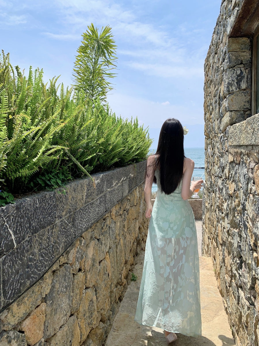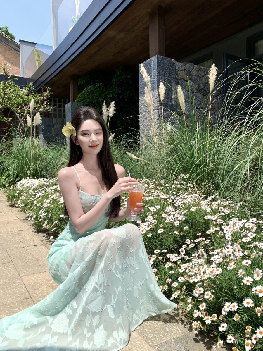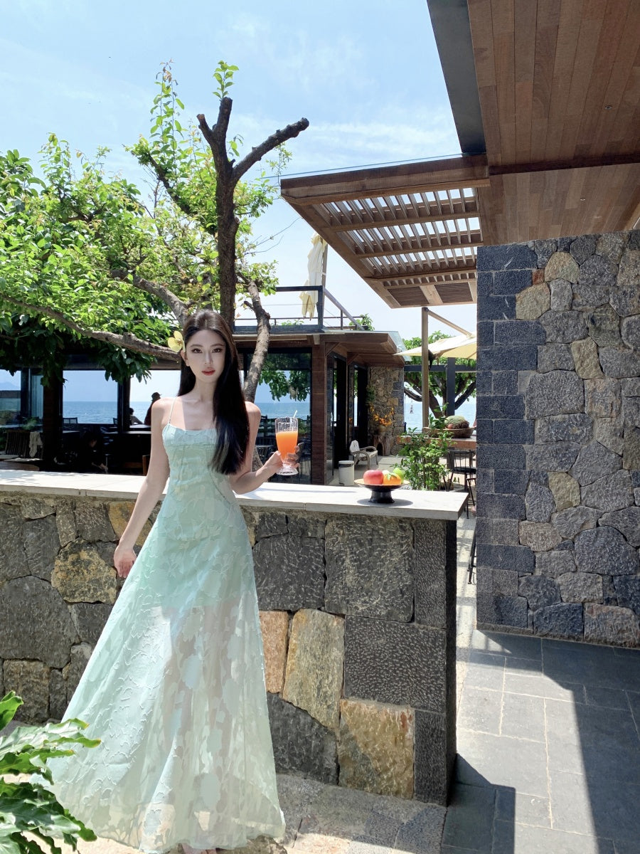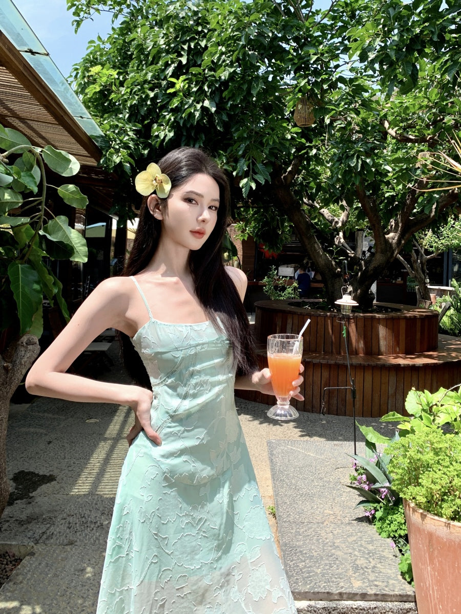 Splendid Spaghetti Strap A-Line Maxi Dress With Lining Enticing Jacquard Cinched-Waist Long Dress AP3397