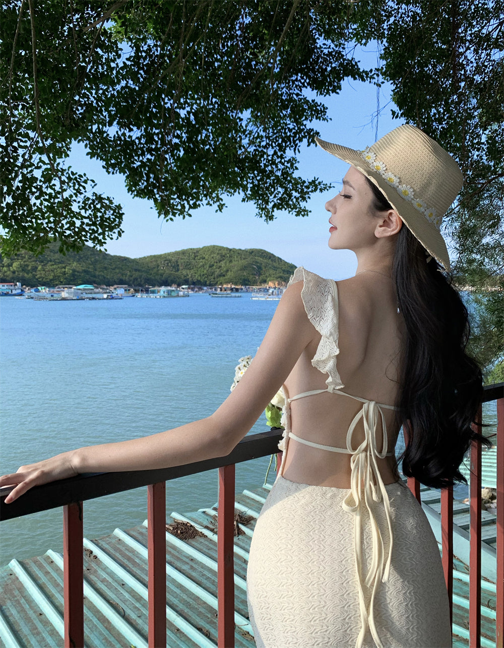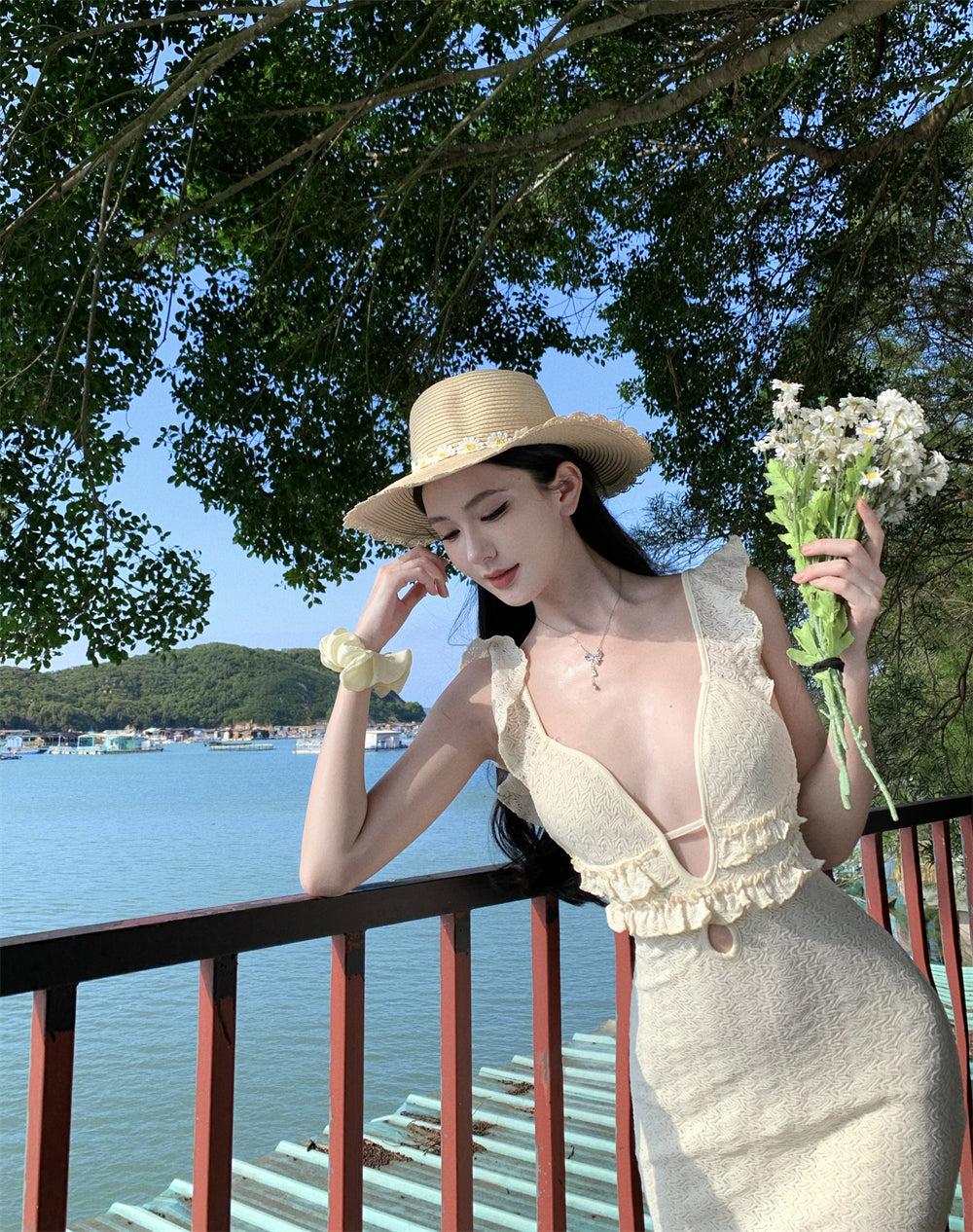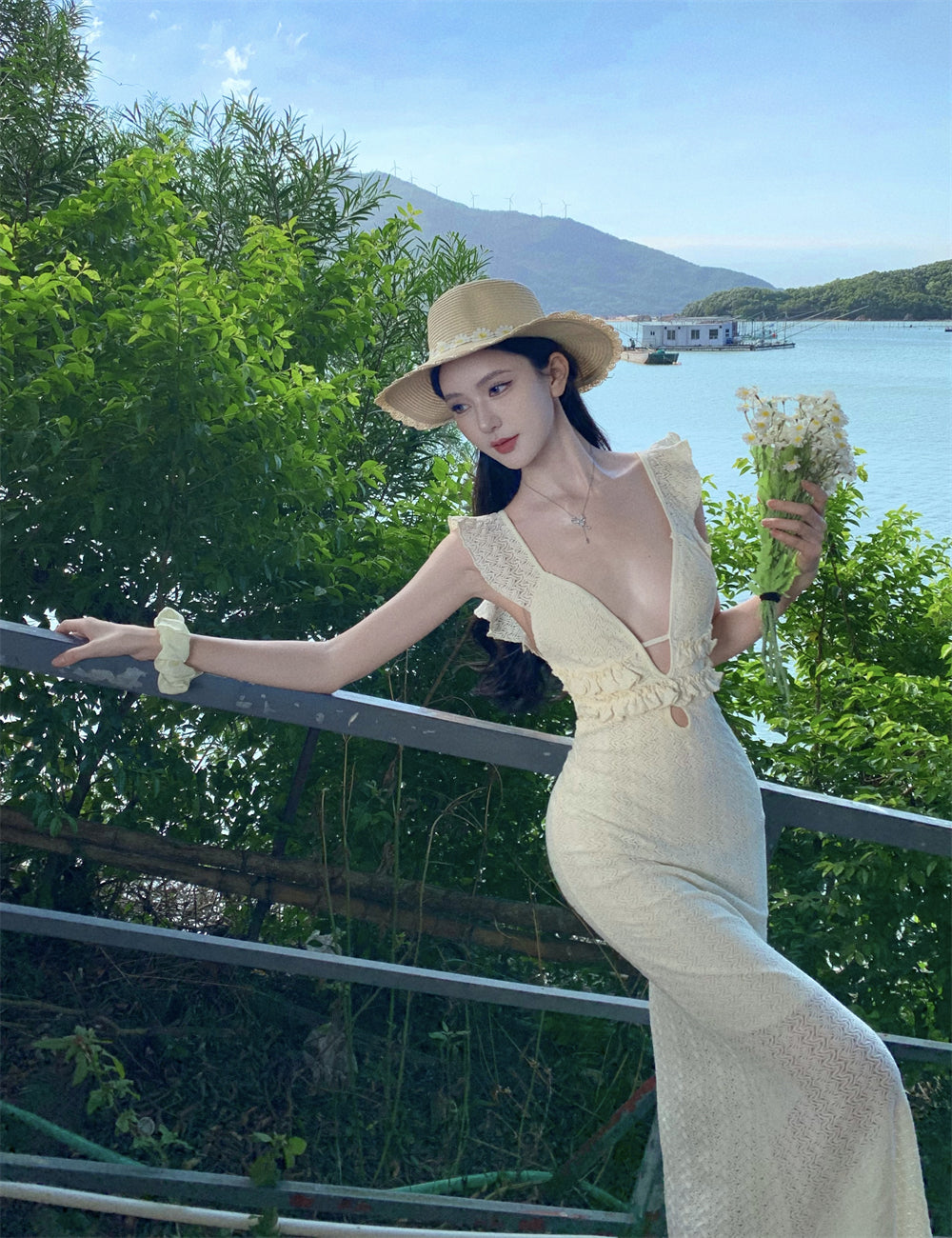 Fairy Ruffles Spaghetti Strap Evening Maxi Dress French-Inspired Crisscross Bind Cutout Long Dress AP3474