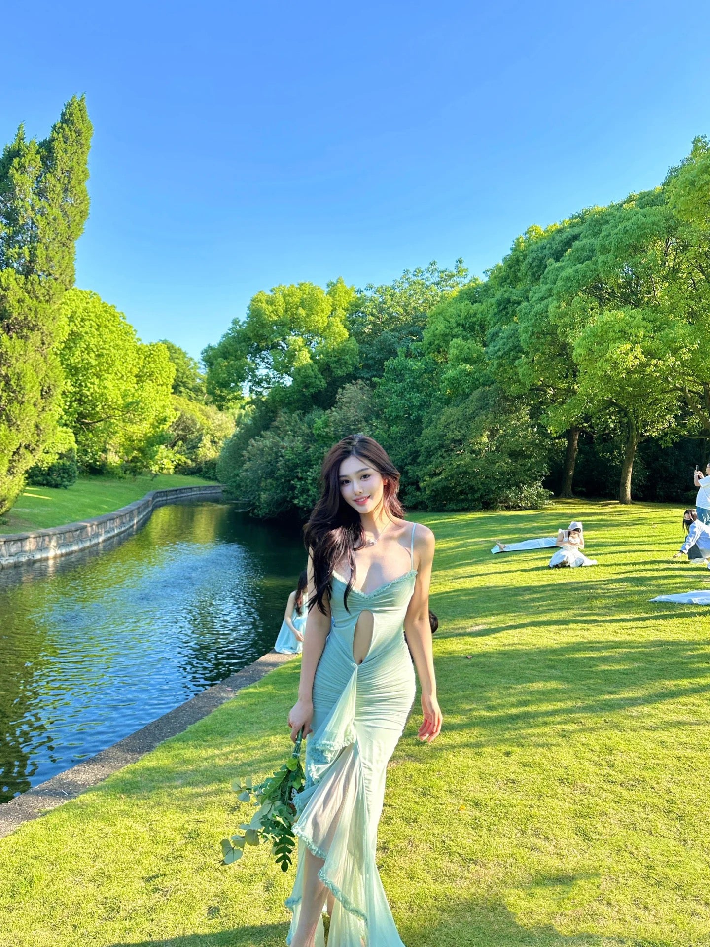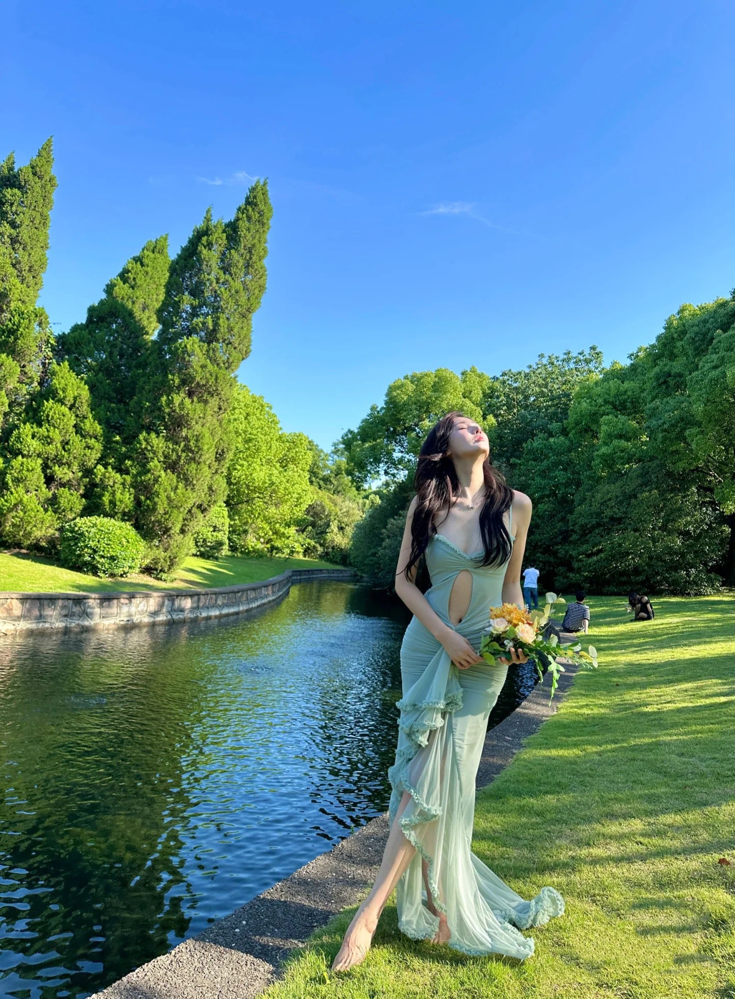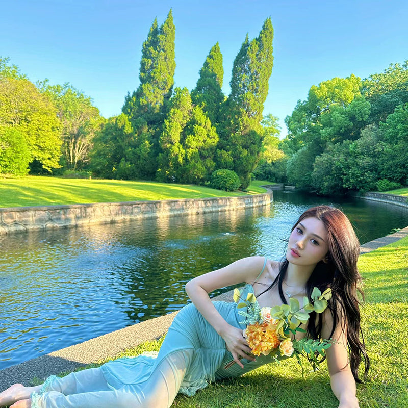 Fashionable Spaghetti Strap Cutout Design Maxi Dress Novelty Ruched Ruffles Tulle Splicing Mermaid Long Dress AP3502