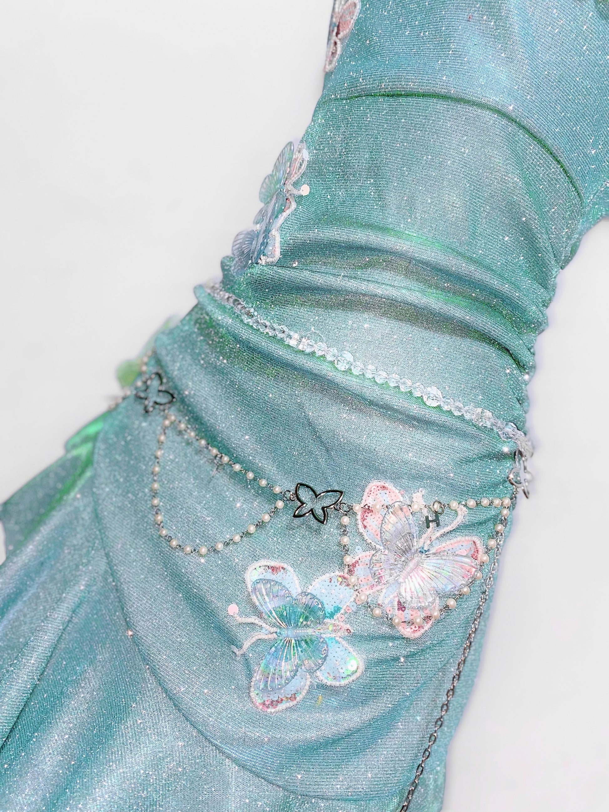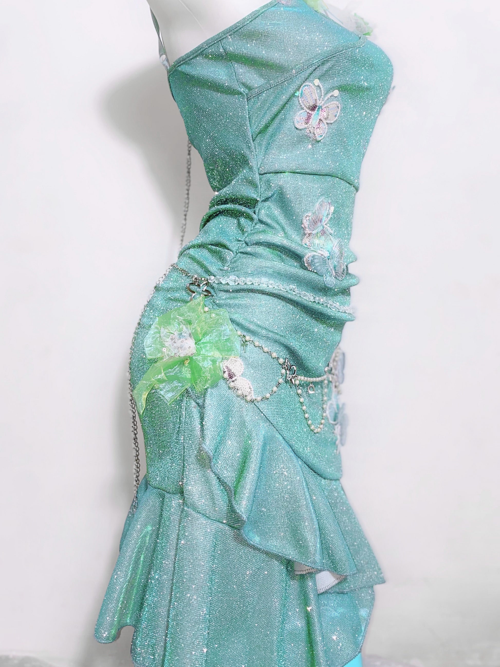 Fabulous Spaghetti Straps A-Line Birthday Gowns Sequins Butterflies Ruffled Homecoming Dress AP3192
