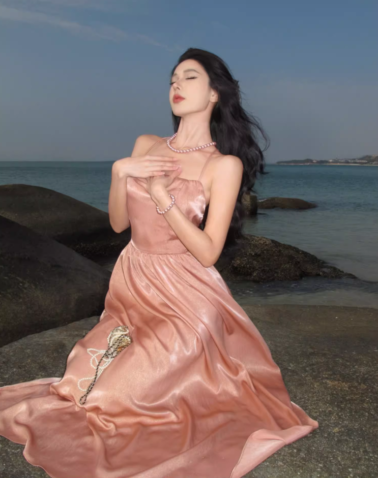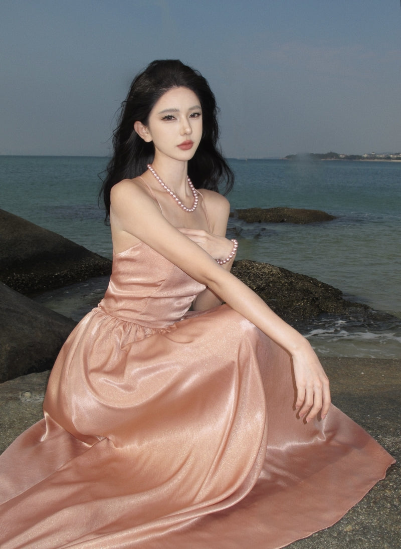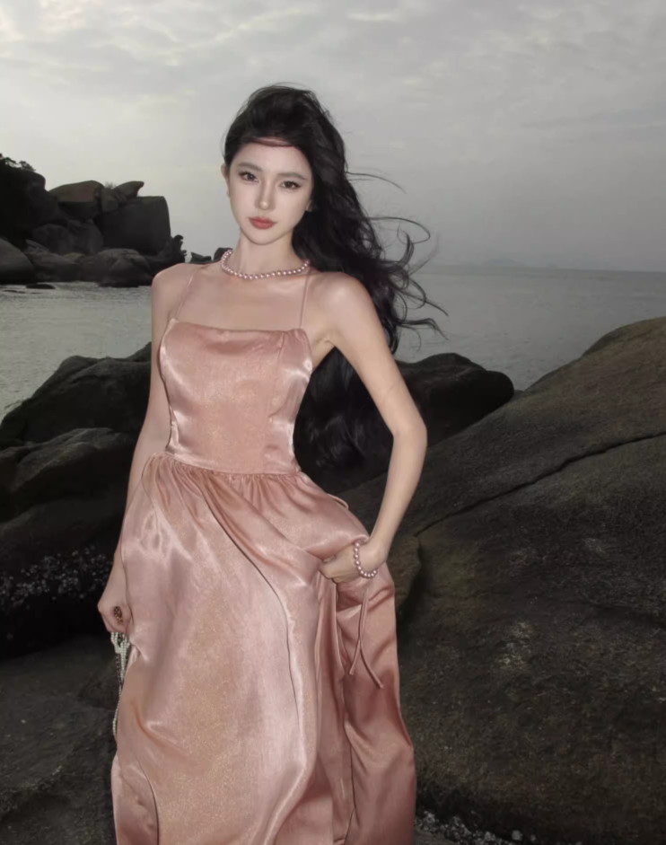 Everyday Wear Spaghetti Straps A-Line Maxi Dress Simple Sheen Fabric Crisscross Back Long Dress AP3541
