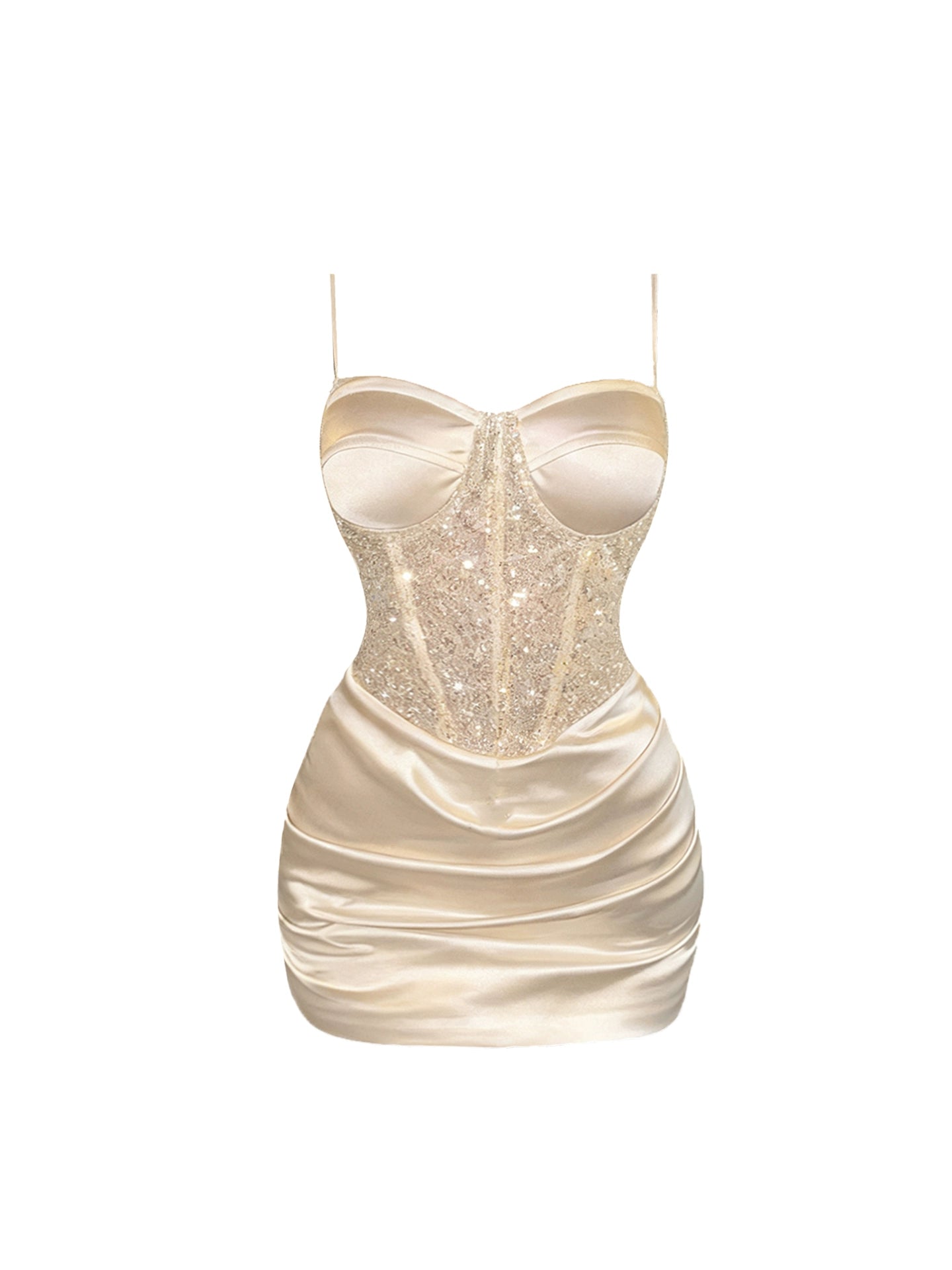Hot Girls Sequins Design Spaghetti Strap Mini Skirt Fancy Splicing Lace Bodycon Short Dress AP4201