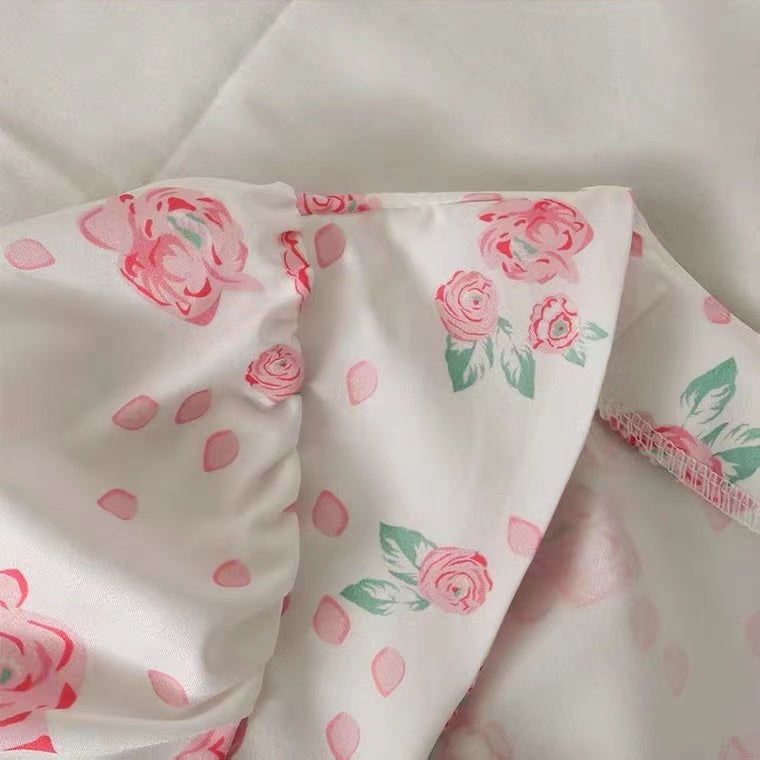 Sweet Style, Floral Print, Square Collar, Collarbone Short Shirt, Short Sleeve Top AP000200