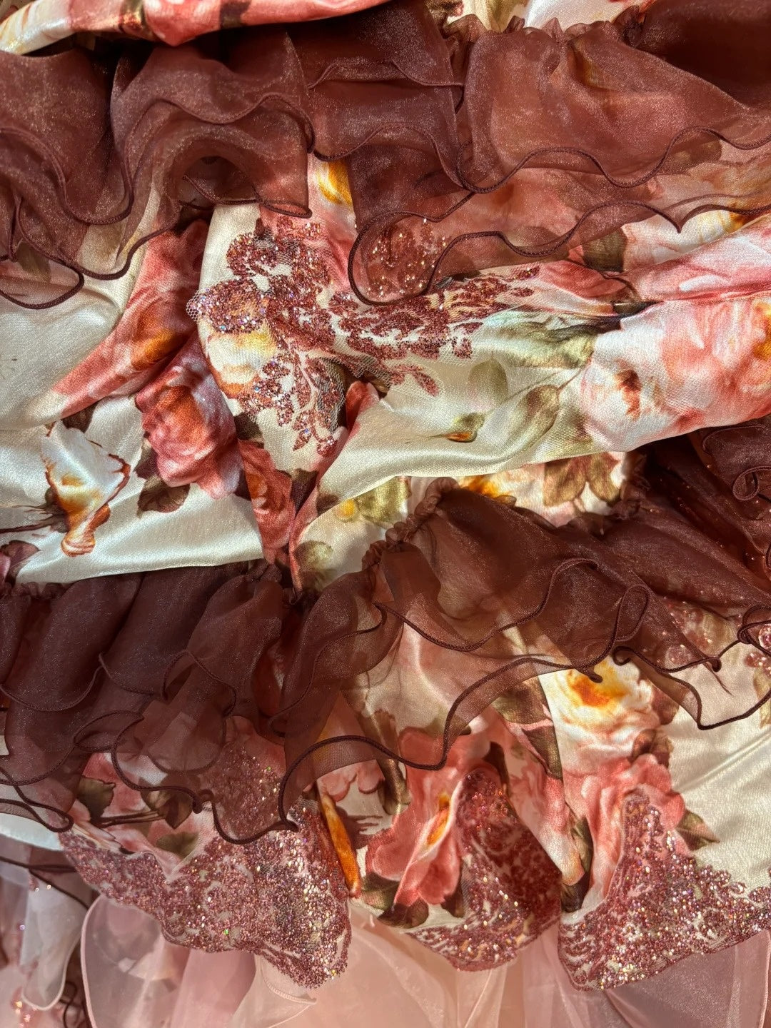 Cute Strapless A-Line Evening Dresses 3D Flowers Sequins Ruffles Tulle Prom Dress AP2719