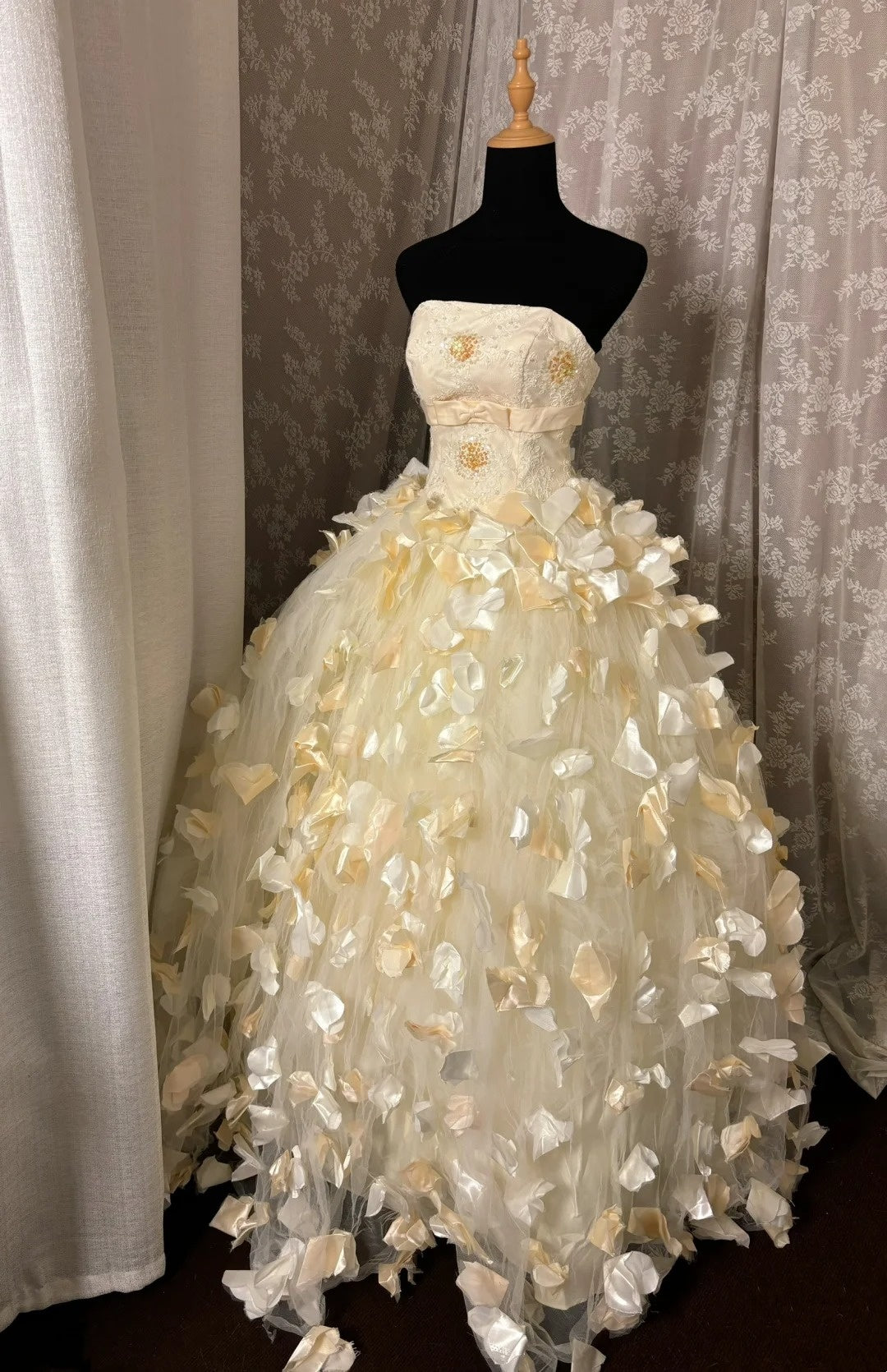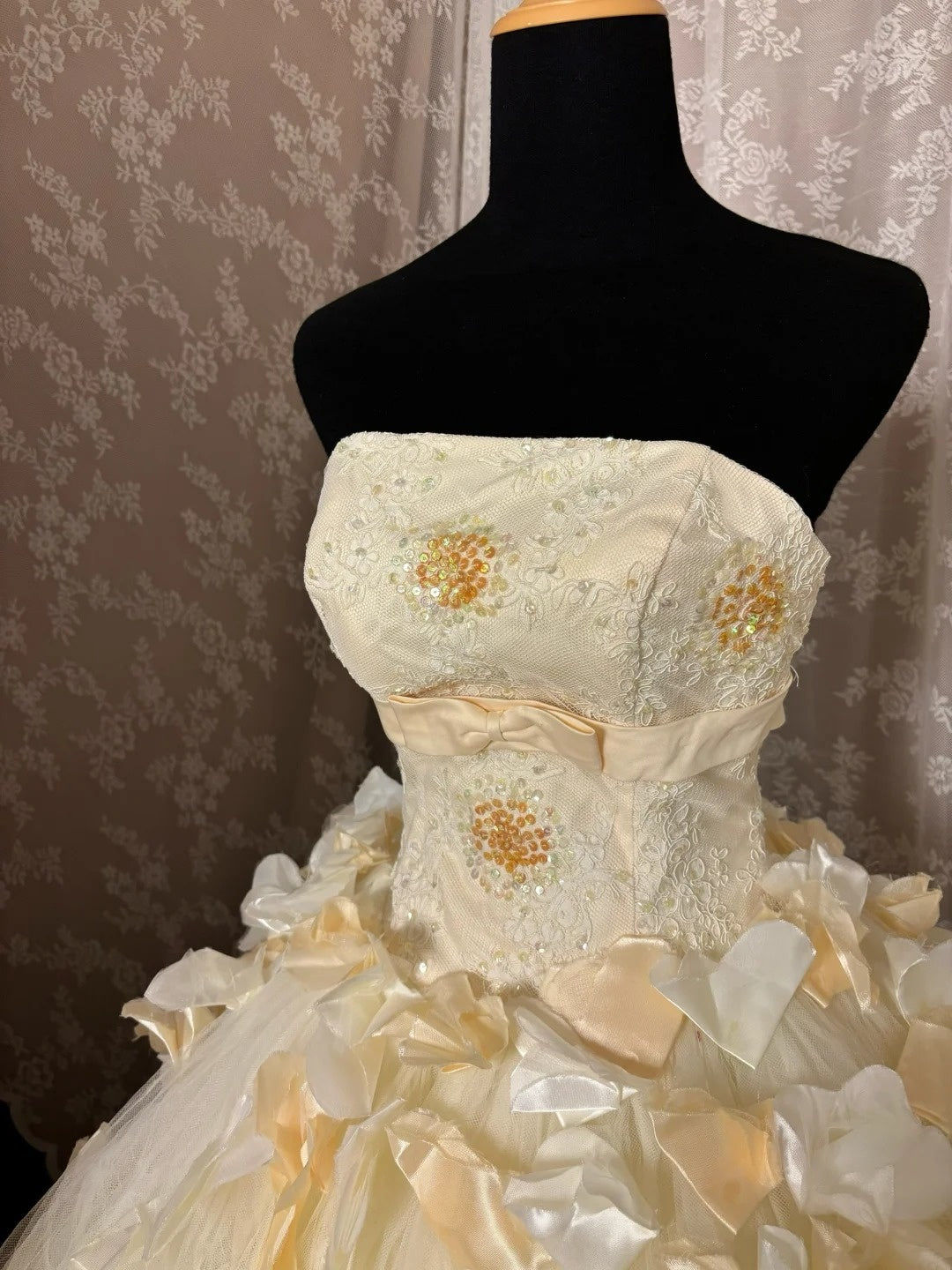 Graceful Strapless A-Line Evening Gowns Sequins Appliques Tulle Prom Dress AP3036