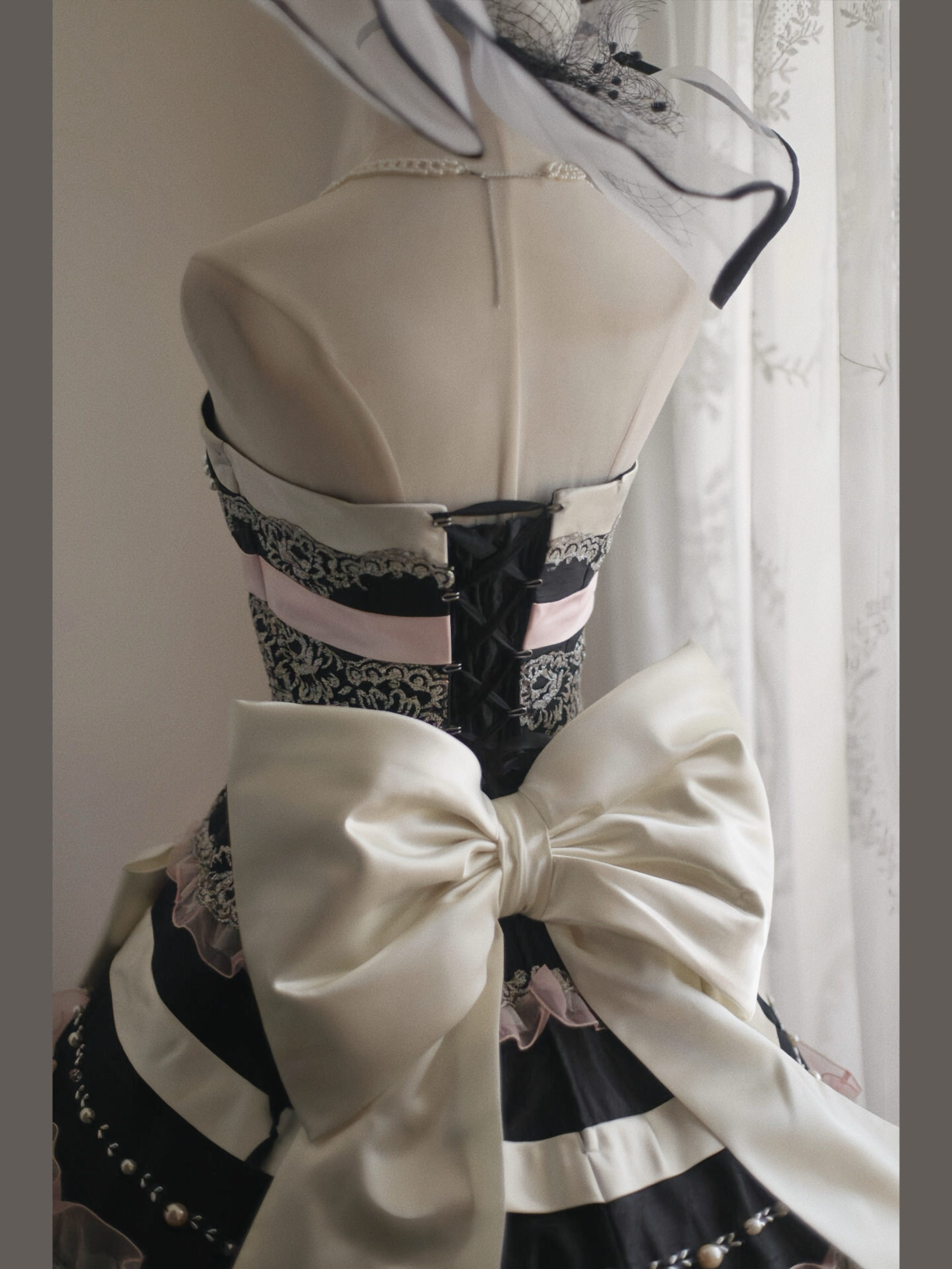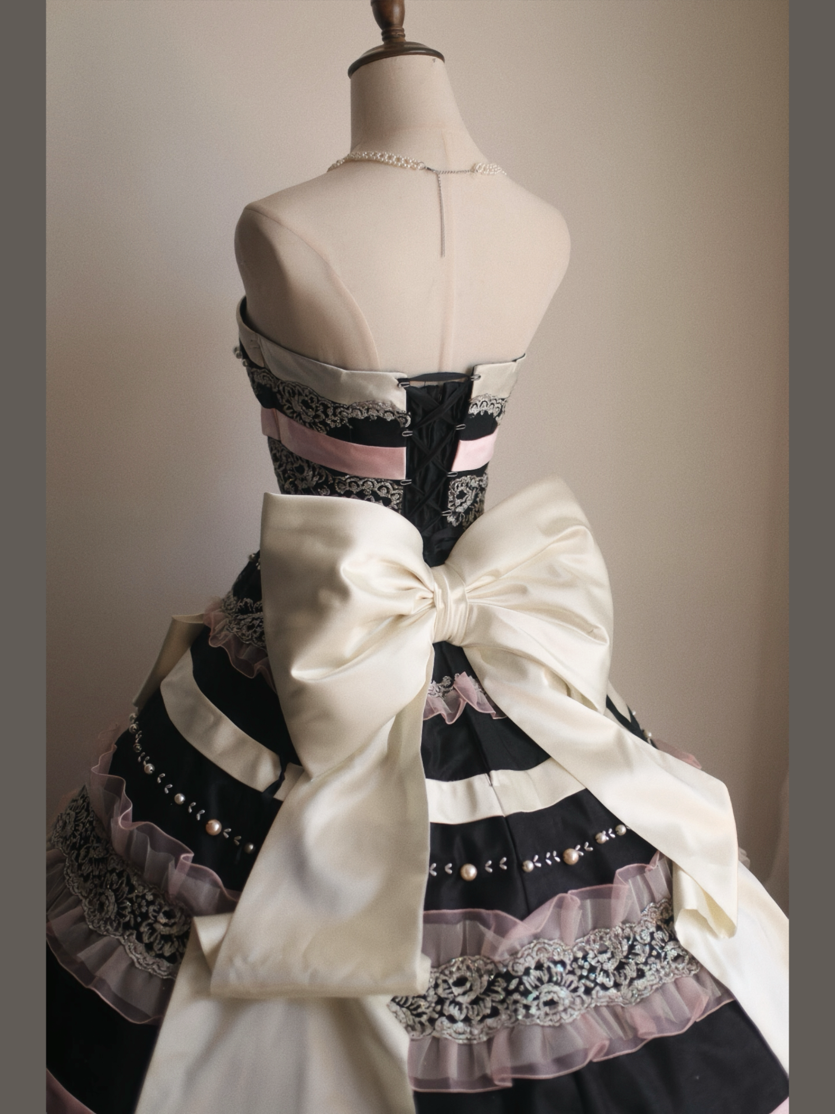 French Style Strapless A-Line Long Evening Gowns Bows Beads Lace Sequins Prom Dress AP3165