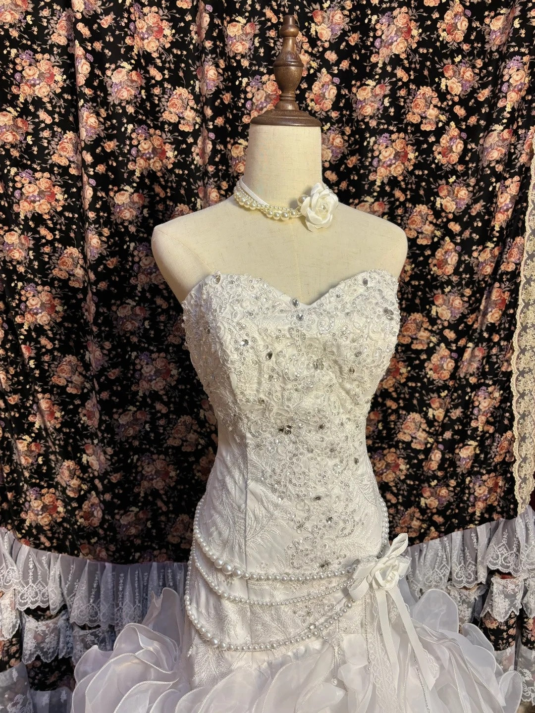 Chic Strapless Mermaid Bridal Gowns Crystals Sequins Appliques Beading Wedding Dress AP2624