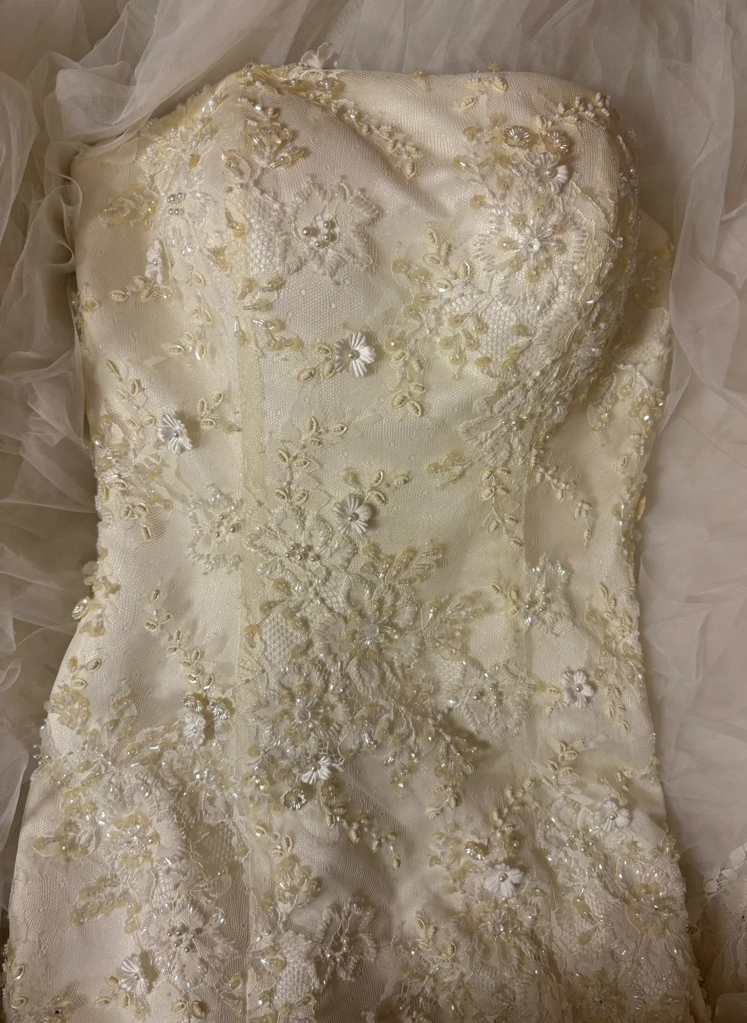 Unique Strapless Mermaid Bridal Gowns With Tulle Train Appliques Beaded Sequins Wedding Dress AP2790