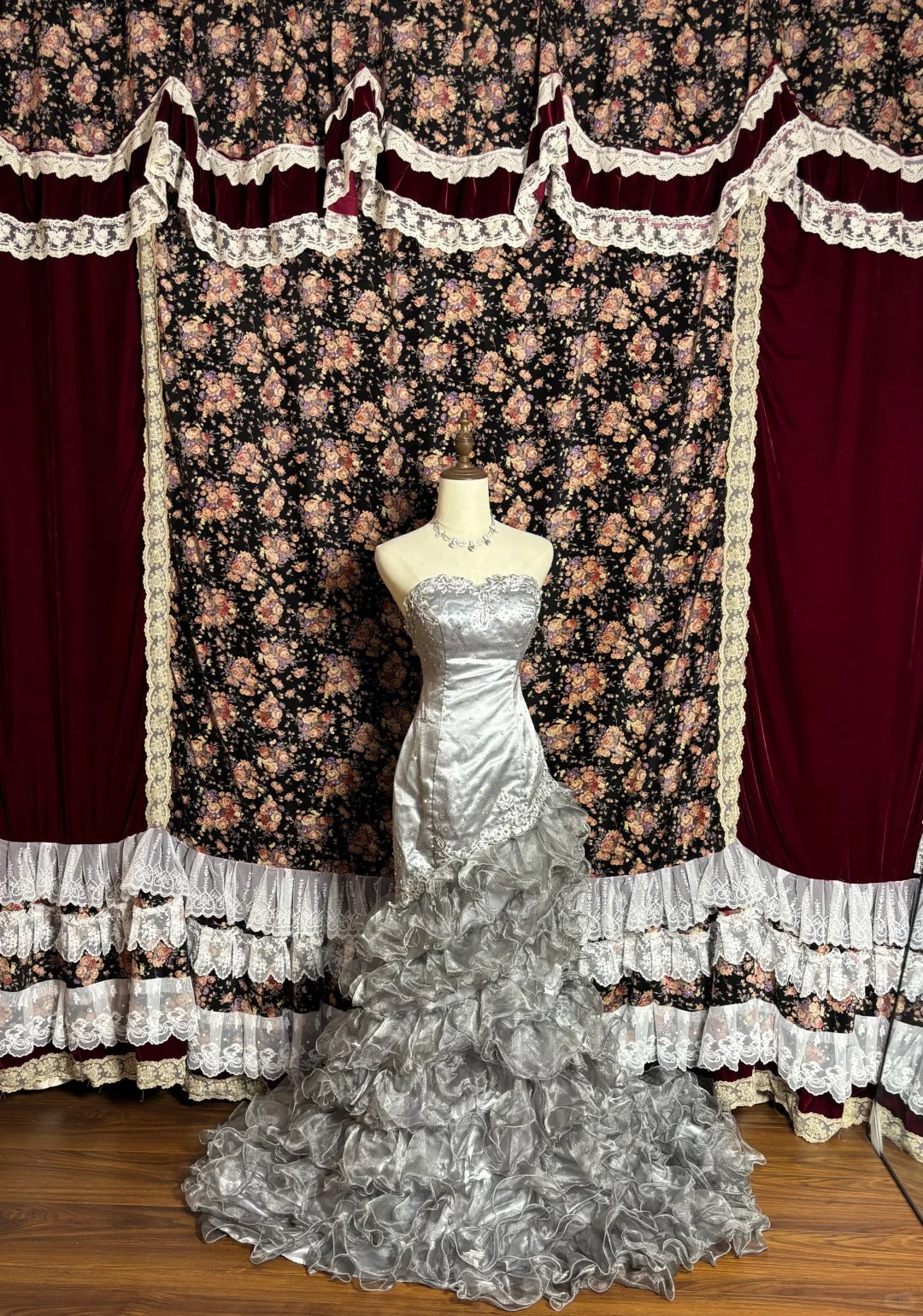 Ethereal Strapless Ruffled Mermaid Formal Dresses Sequins Appliques Beaded Prom Dress AP2574