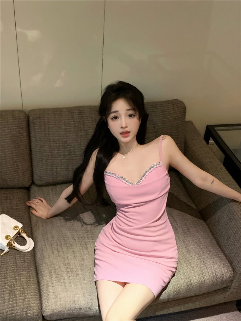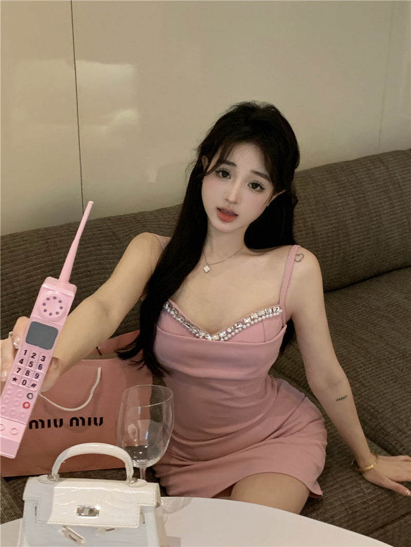 Crystal Ornament Pink Short Skirt Birthday Sweet Girls Sheath Short Dress AP0455