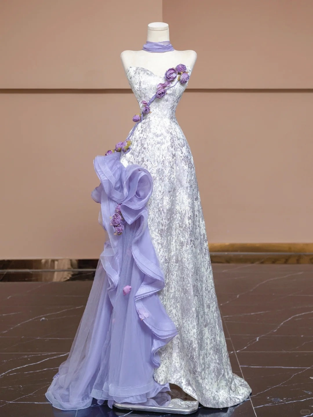Graceful Handmade Flowers Strapless Ruffled Tulle Trim A-Line Prom Dress AP2274