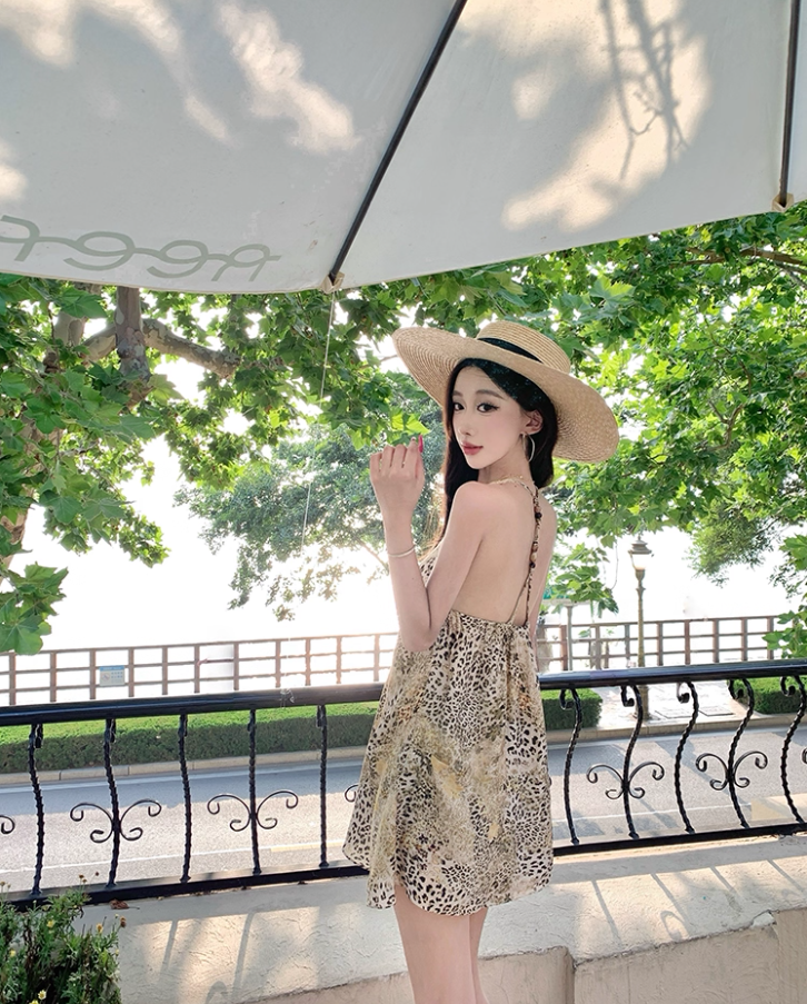 Boho Coastal Getaways Leopard Mini Skirt Y2K Hot Girls A-Line Halter Short Dress AP1434