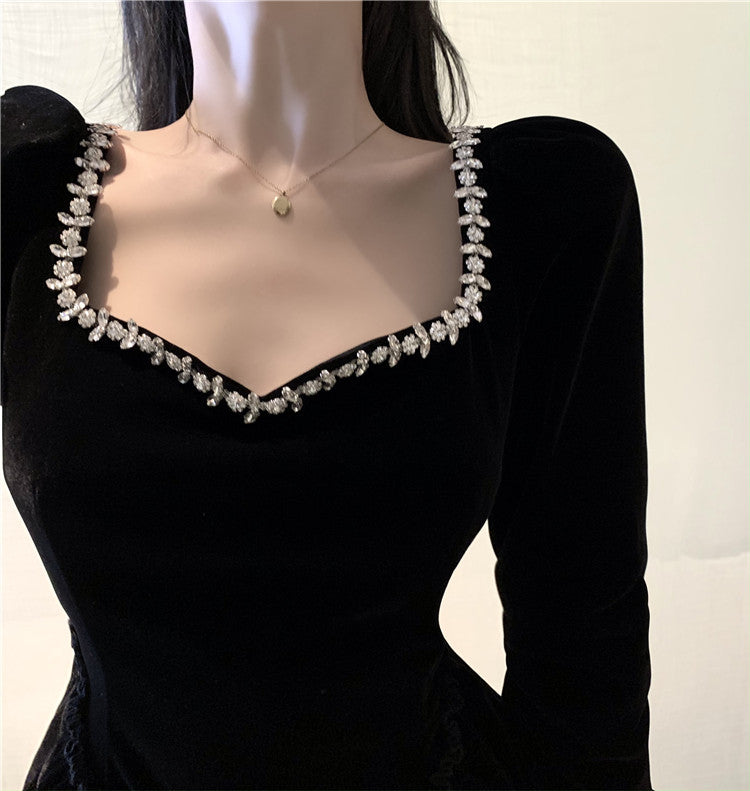 Everyday Wear Velvet Charming Flattering Skirt Long Sleeve LBD Fine Texture Short Dress AP0539