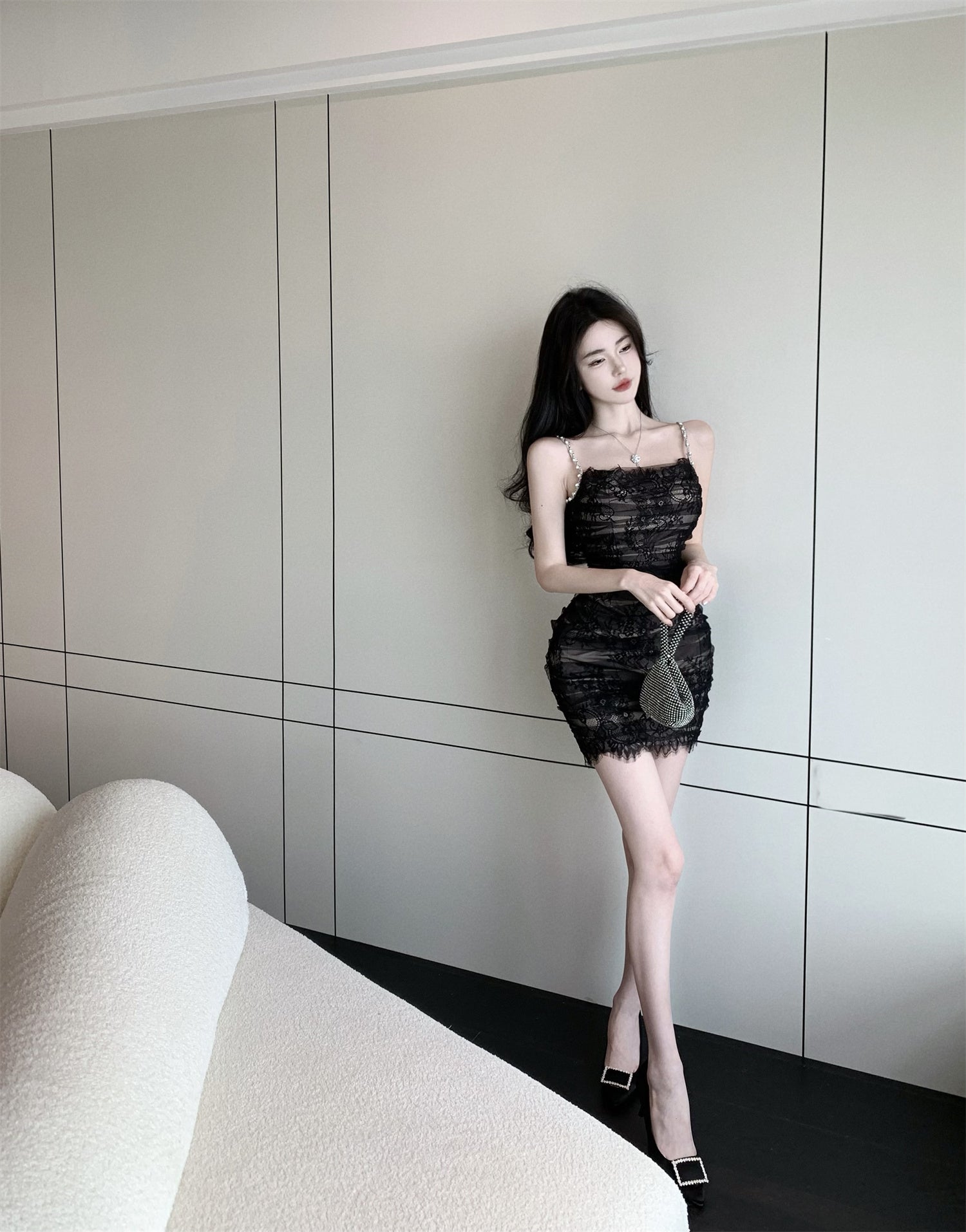 Charming Spaghetti Strap Dress Sheath Summer Skirt Alluring Lace Design Bodycon Short Dress AP0302