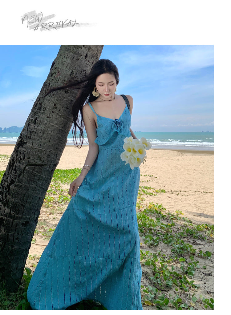 Romantic Loose Fit Flowy Dress Spaghetti Strap Summer Vacation Long Dress AP0353