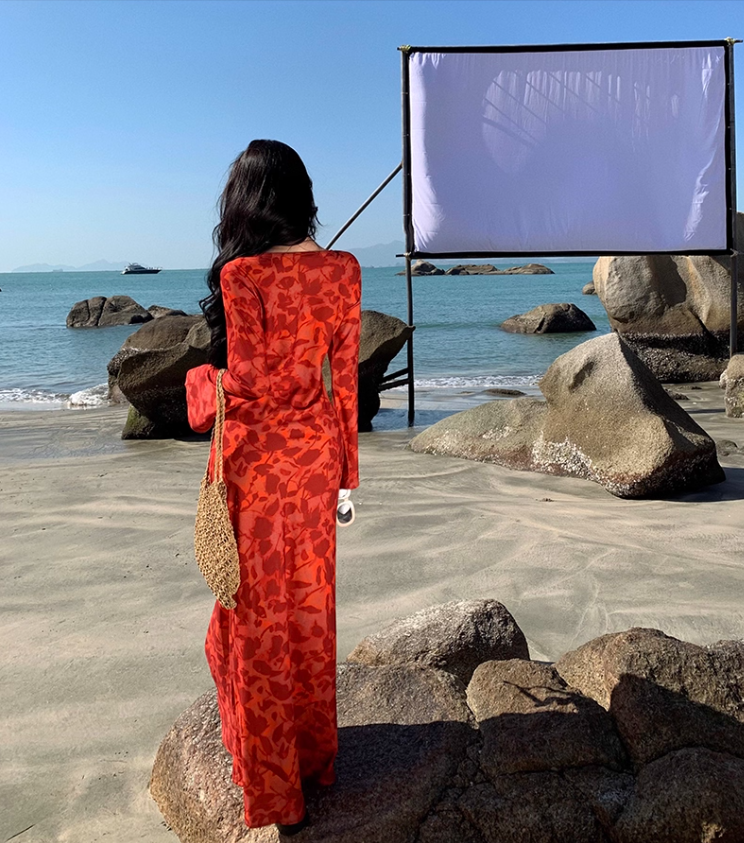 Floral Print Bodycon Maxi Dress Strapless Long Sleeve Photo Ready Bodycon Long Dress AP0573