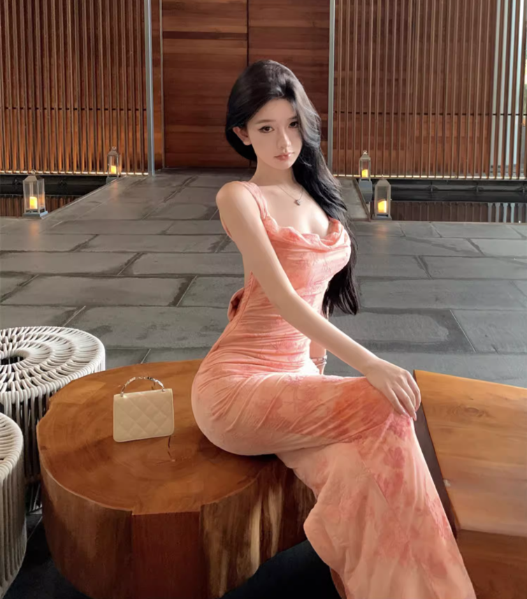Floral Print Summer Vacation Flattering Bodycon Mermaid Dress Spaghetti Strap Party Long Dress AP0356