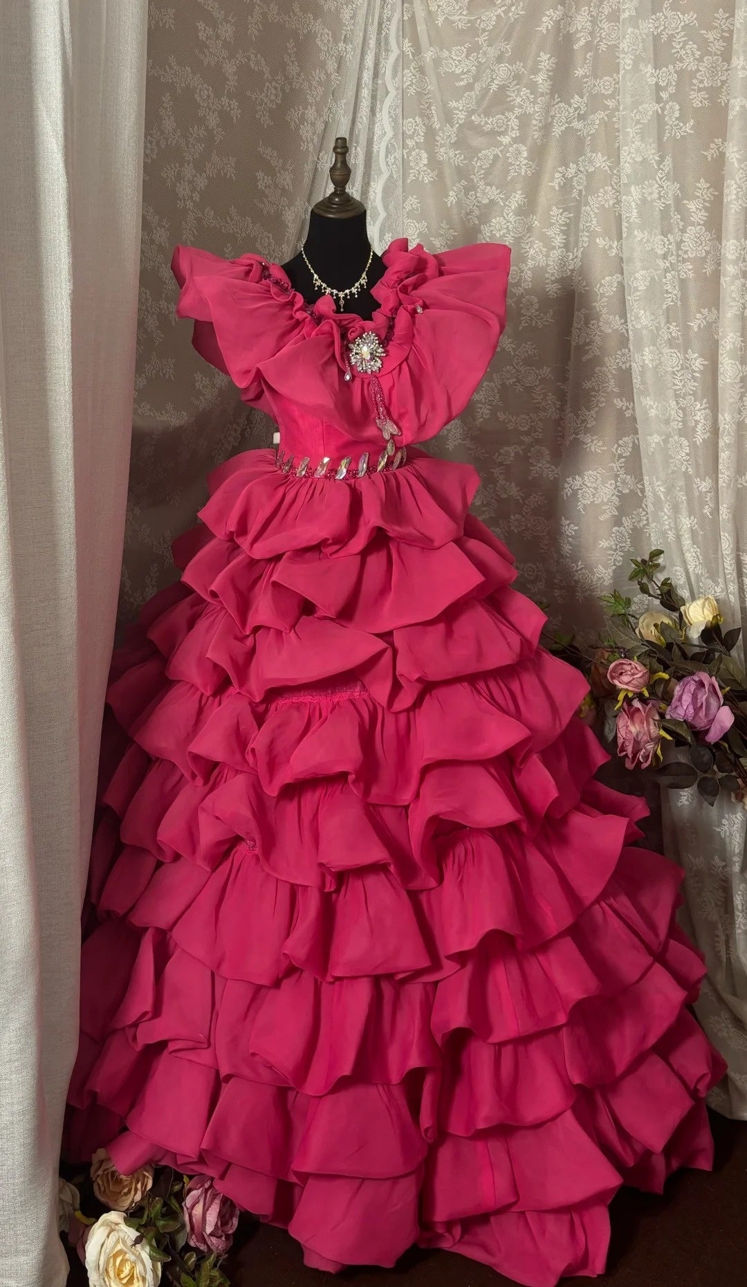 Dopamine Style V-Neck A-Line Sweet 16th Gowns Rhinestone Sequins Beading Ruffled Prom Dress AP2920