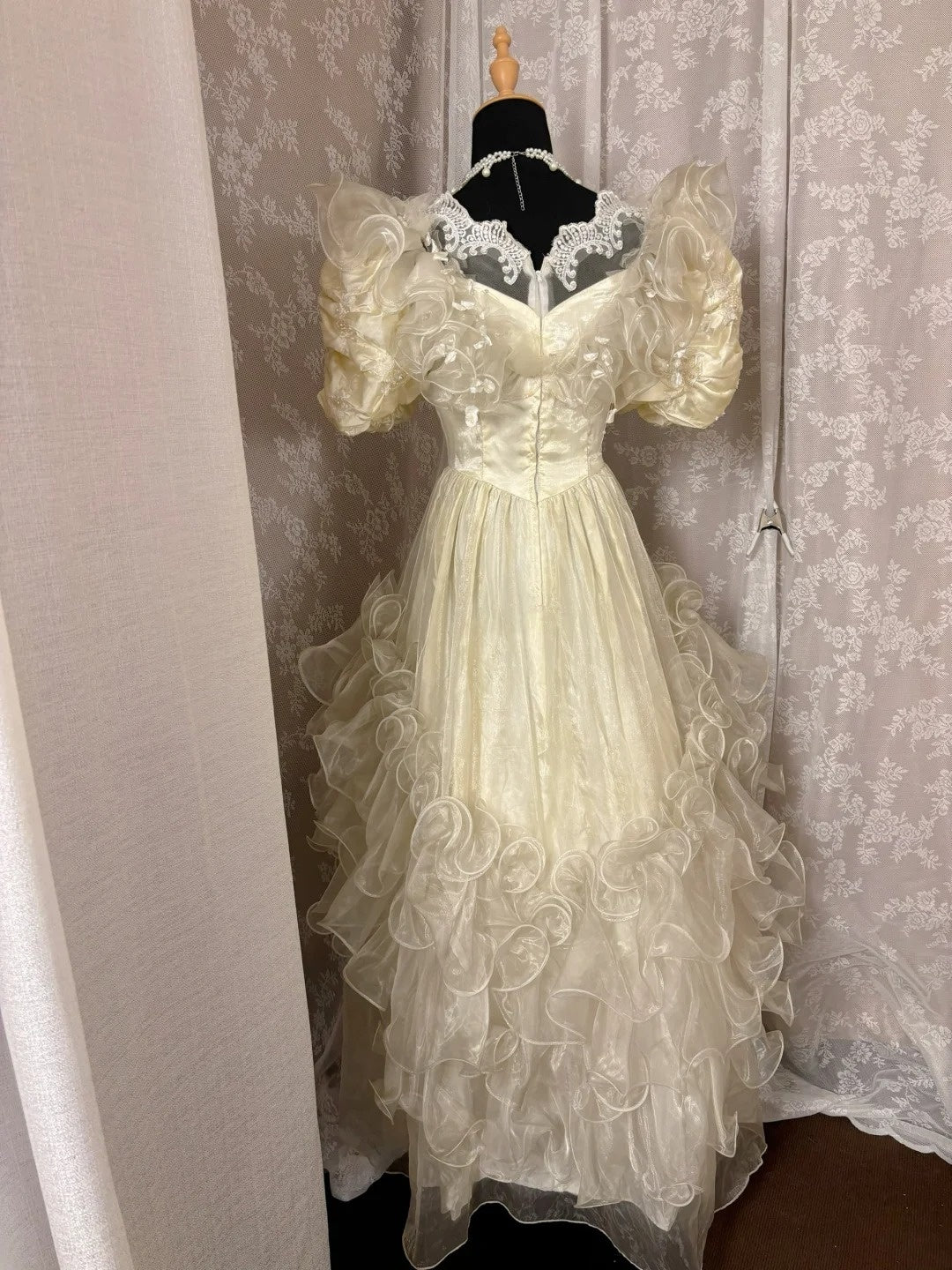 Sheen V Neck A-Line Sweet 16th Gowns Lace Sequins Beads Appliques Ruffled Prom Dress AP3046