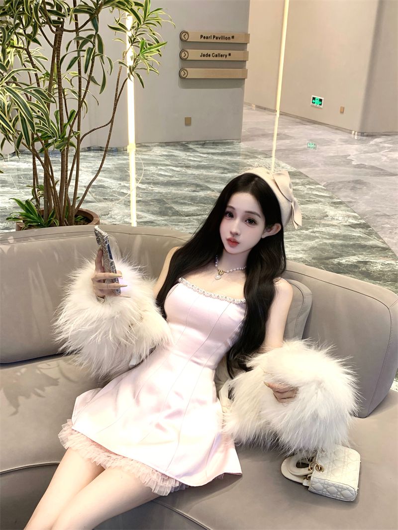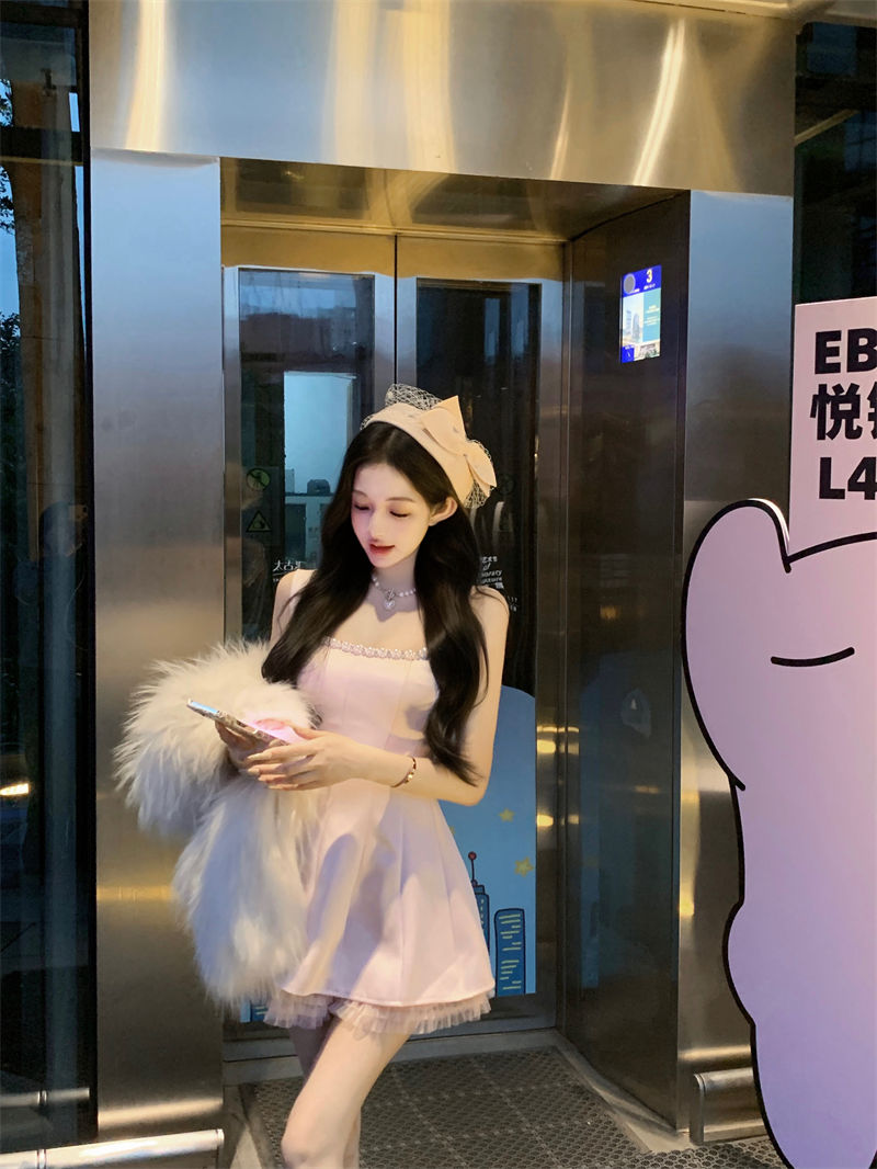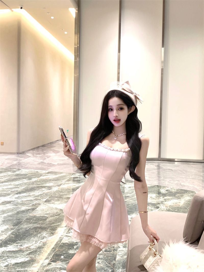 Charming Lace Floral Hem Waist-Cinching Mini Skirt Sweet Girls Bubble Short Dress AP0499
