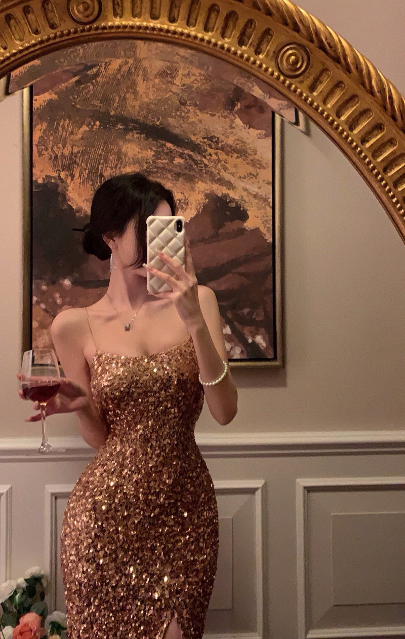 2025 Newest Sexy Lady Sparkle High-Slit Elegant Party Shiny Women Dress AP0400