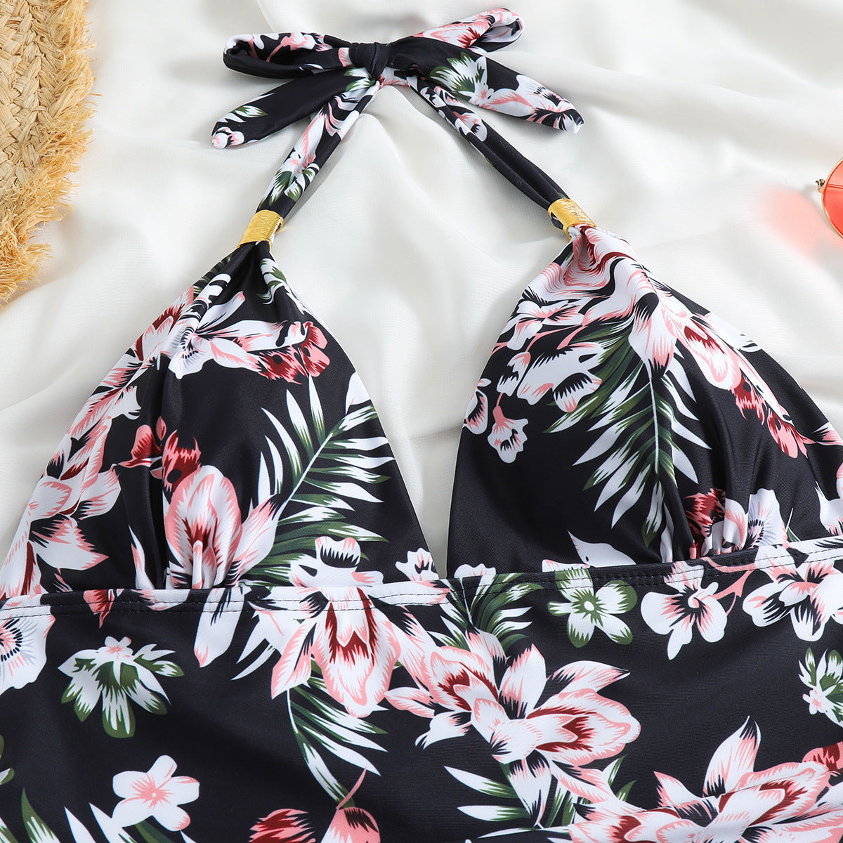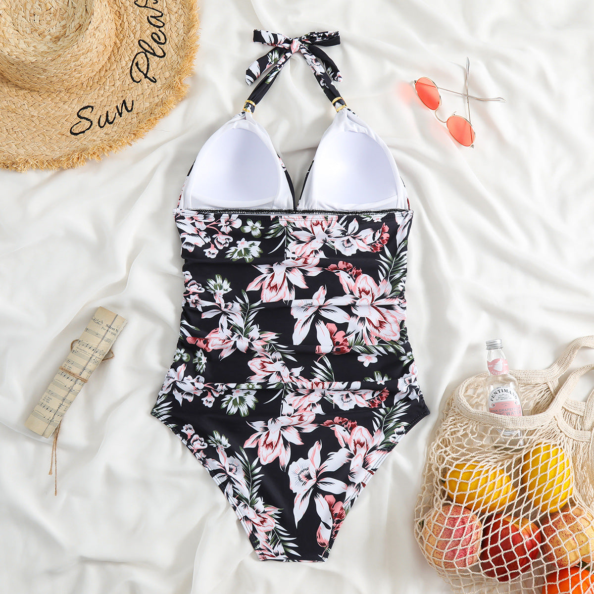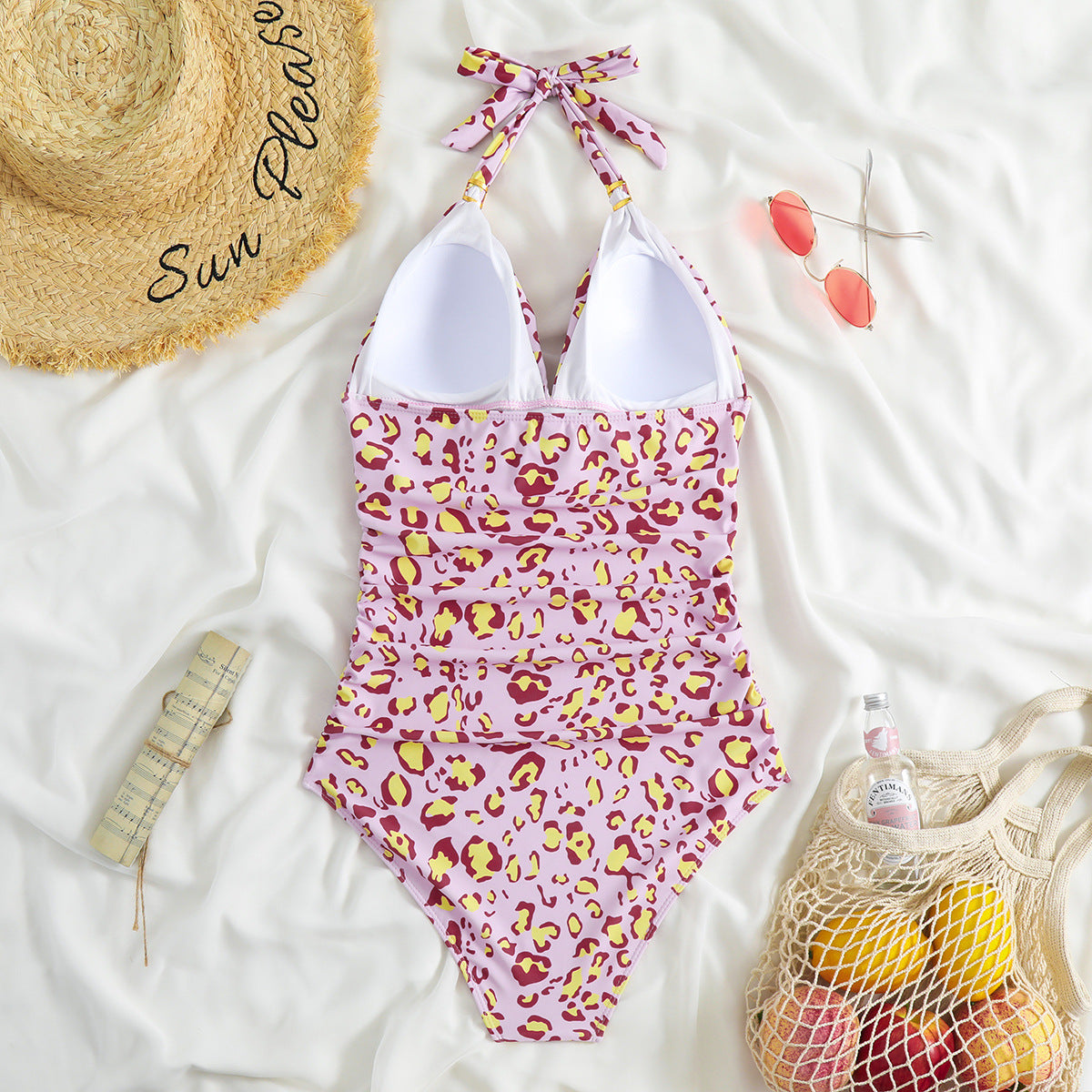 One Piece Swimsuit Conservative Leopard Print Hanging Neck Red Backless AP00057