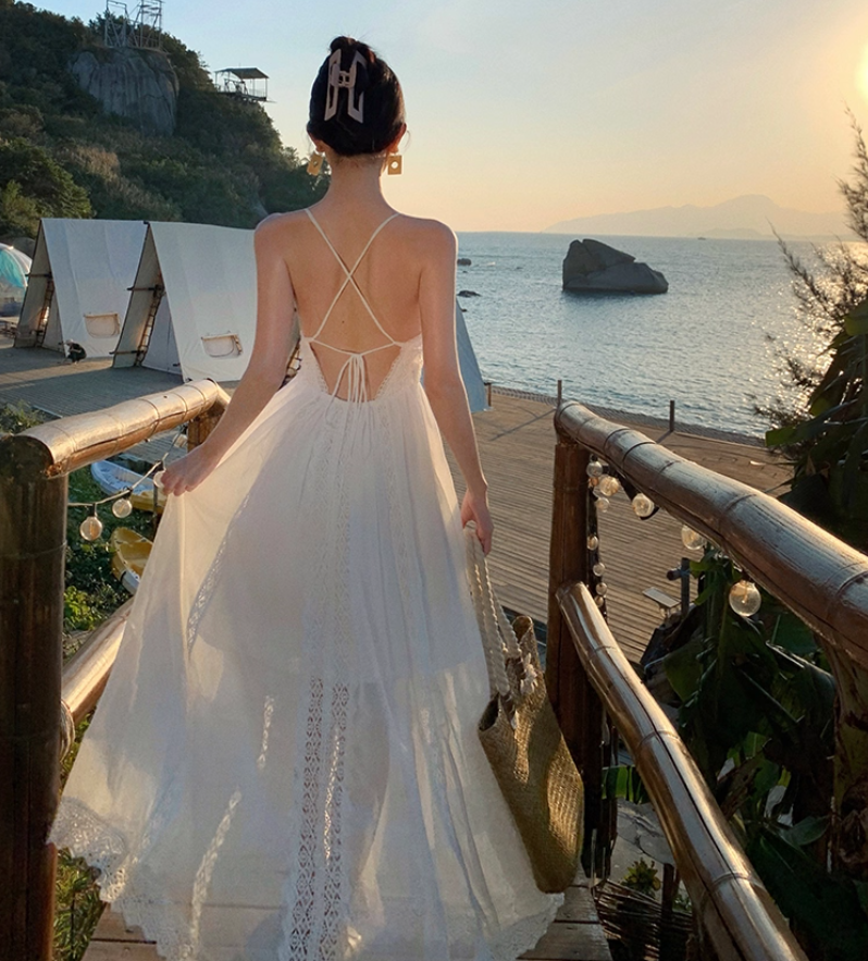Soft Fabric Simple Silhouettes Maxi Dress Spaghetti Strap Hollow-Out Oversize Long Dress AP0680