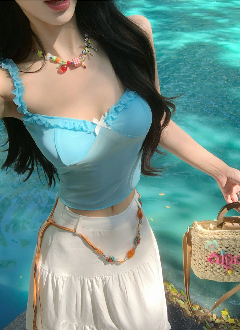 Attractive Two-Piece Spaghetti Strap Maxi Dress Everyday Wear A-Line Bow Ruffles Long Dress AP3422