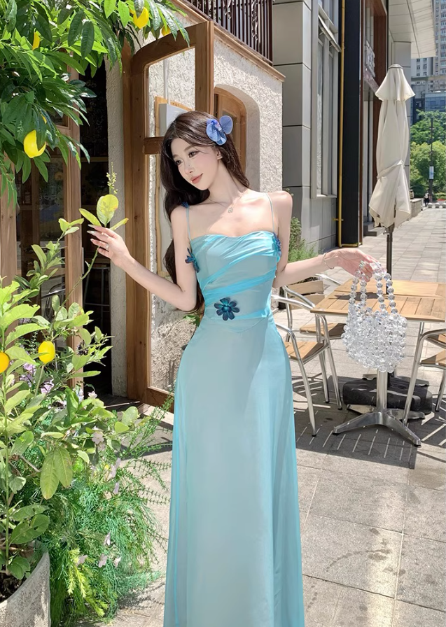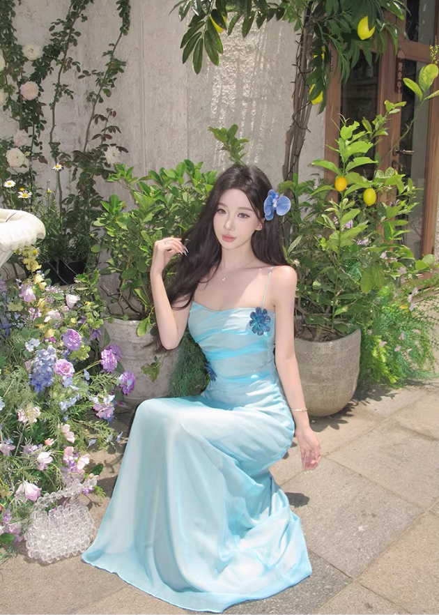 Lustrous Fabric Simple Flattering Maxi Dress Ethereal Spaghetti Strap Long Dress AP0630