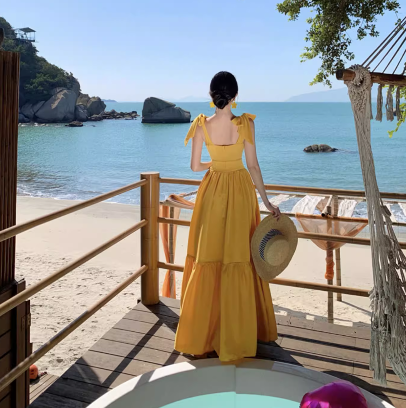 Ruffled V Neck Beach Elegant Tiered Dress Photo Outfit Flattering Vacation Long Dress AP0425