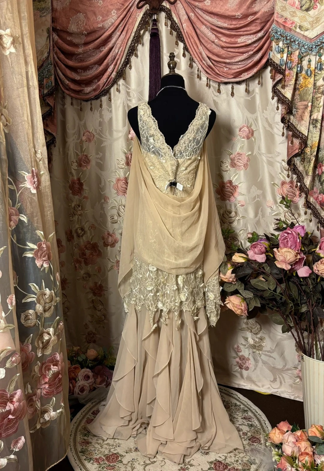 Unique V-Neck Sheath Formal Dresses Appliques Lace Tulle Prom Dress AP2845