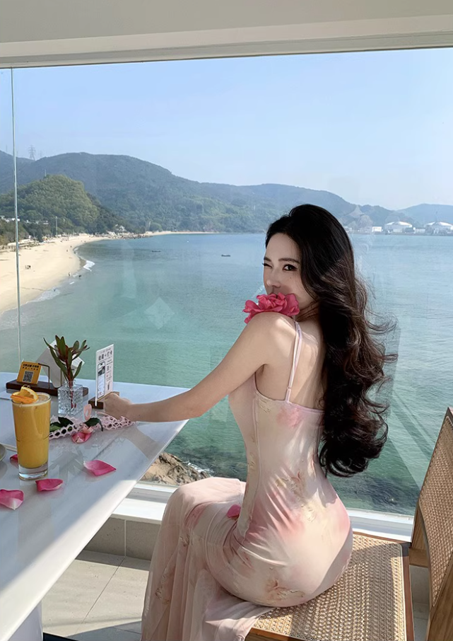 Graceful High-Slit Mermaid Floral Print Maxi Dress Chic Flowy Spaghetti Strap Sheer Lace Splicing Long Dress AP1554