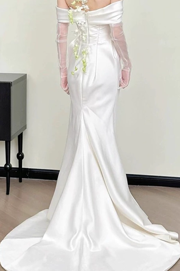 Classical Off-Shoulder Satin Fabric Feast Mermaid Dress Strapless Cinched-Waist Prom Dress AP0771
