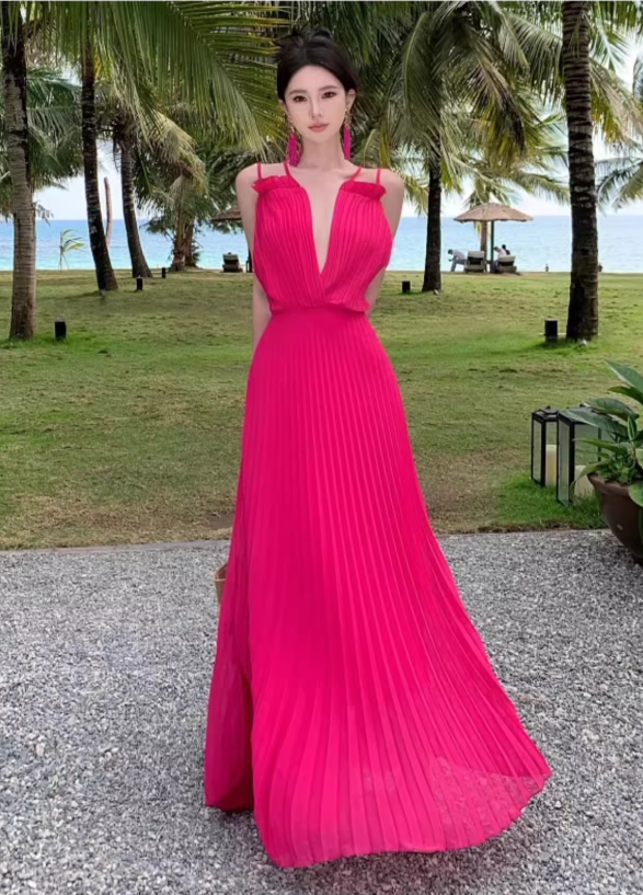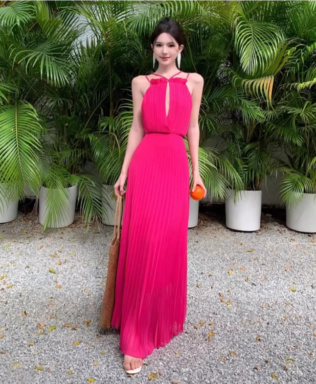 Vibrant Cross Back Tie Dopamine Maxi Dress Waist-Cinching Gingham Halter Long Dress AP0612