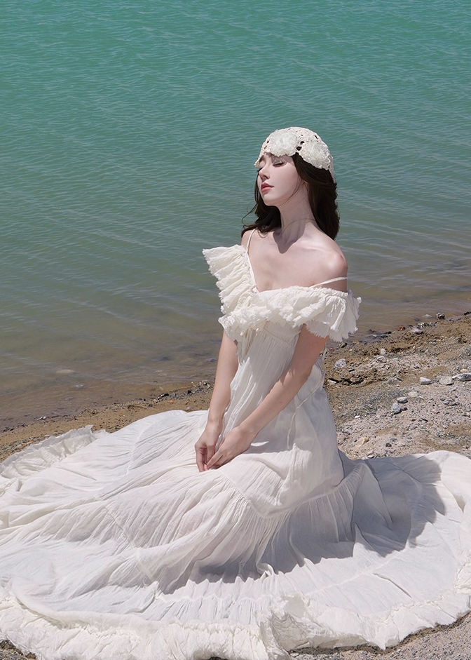 Dreamy White Ruffled Hem Off-Shoulder Maxi Dress Elegant Adjustable Strap Flowy Long Dress AP1226
